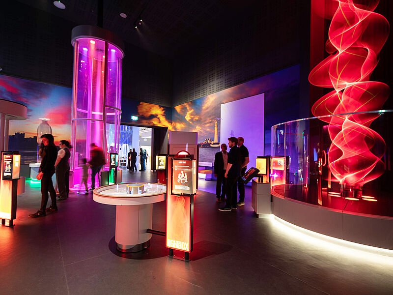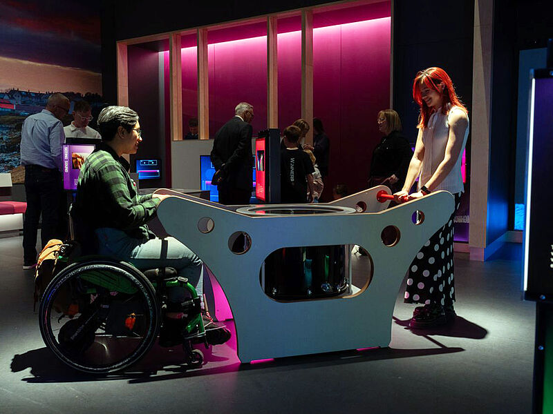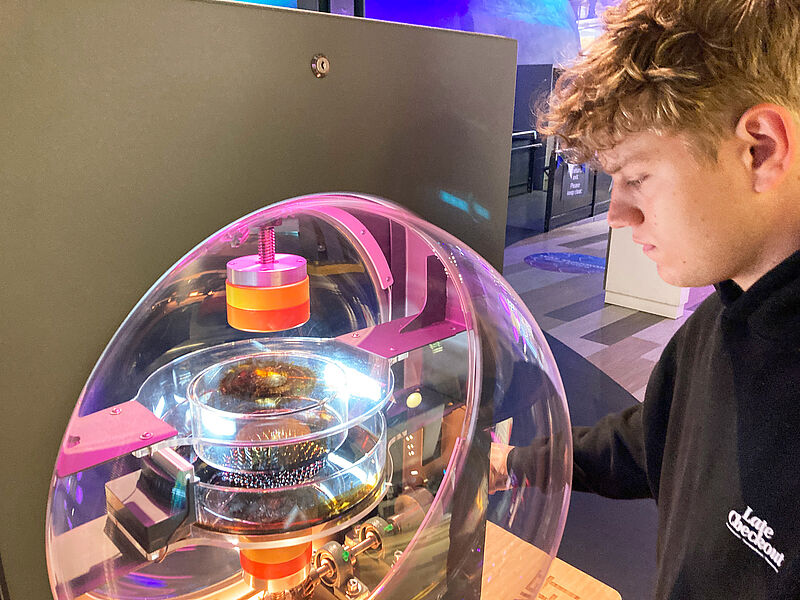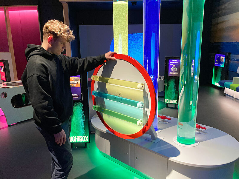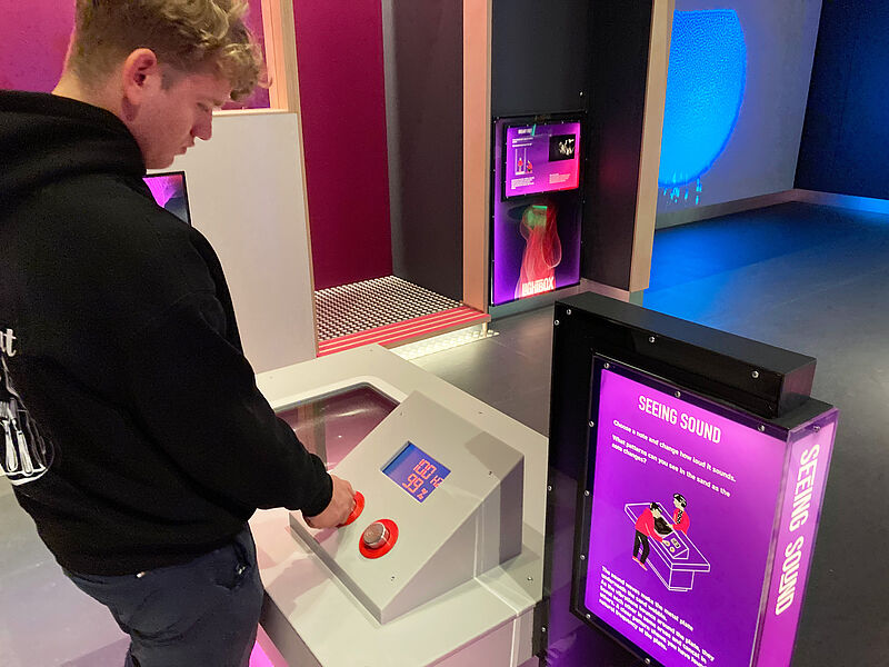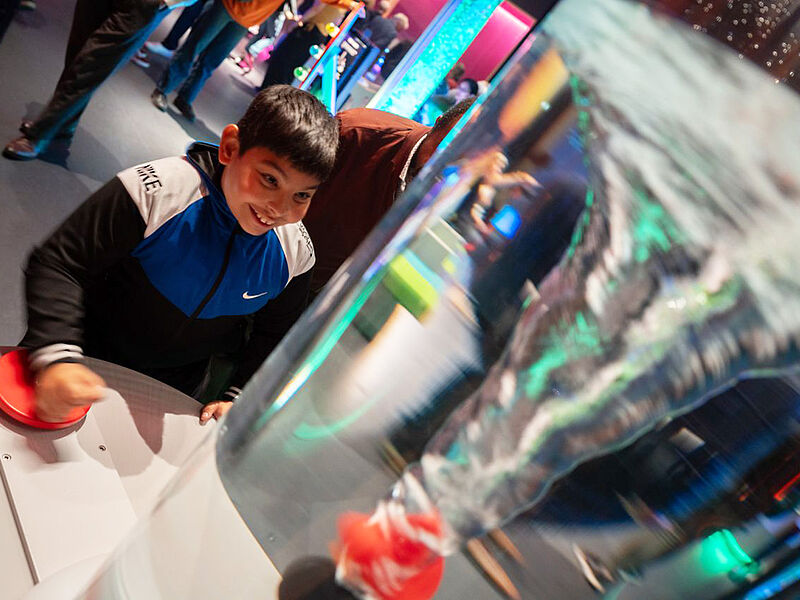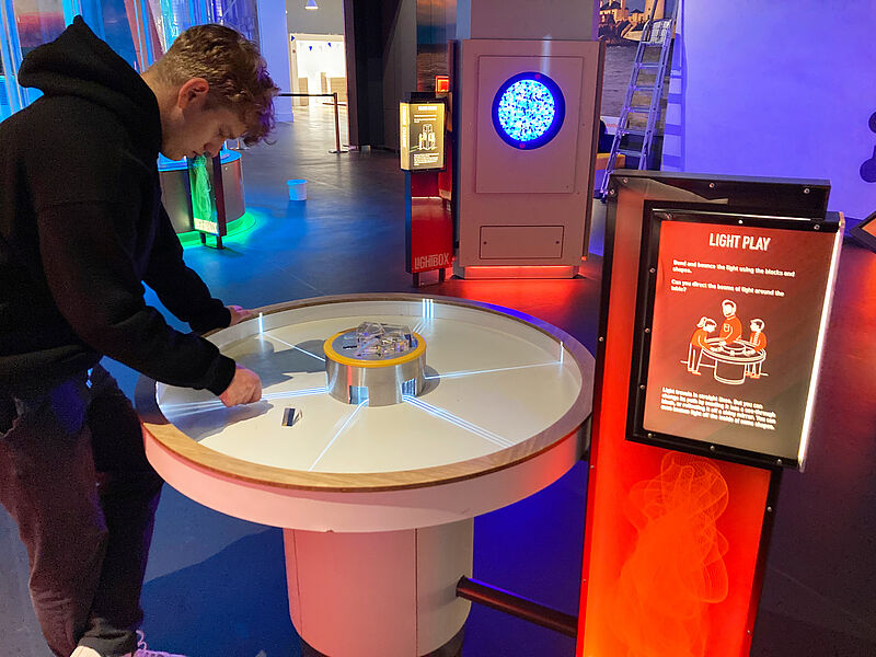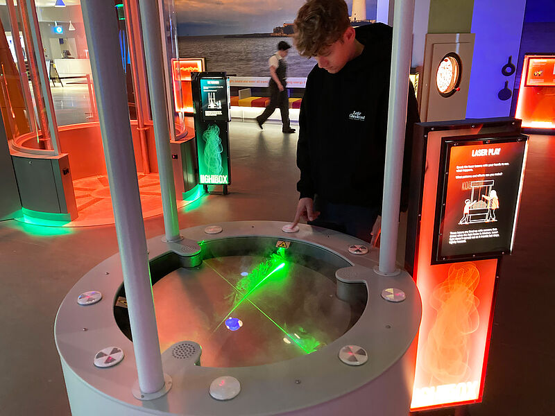 Im Sommer 2020 wurden wir mit der technischen Entwicklung und dem Bau von interaktiven Exponaten für die WOW Zone betraut. Die Ausstellung, die den Besuchern die Möglichkeit bietet, zu erforschen, wie erstaunliche Wissenschaft im täglichen Leben eingesetzt wird, und sich von dramatischen Demonstrationen, die sie selbst steuern können, begeistern zu lassen, wurde im Januar 2023 für die Öffentlichkeit eröffnet. Diesem Projekt folgte die Beauftragung für das Design und die Fertigung von Exponaten für die brandneue Lightbox-Galerie des Zentrums, welche Licht, Farbe und Klang präsentiert. Lightbox wurde anlässlich des 25-jährigen Jubiläums des Life Science Centre's am 23. Mai 2025 eröffnet.