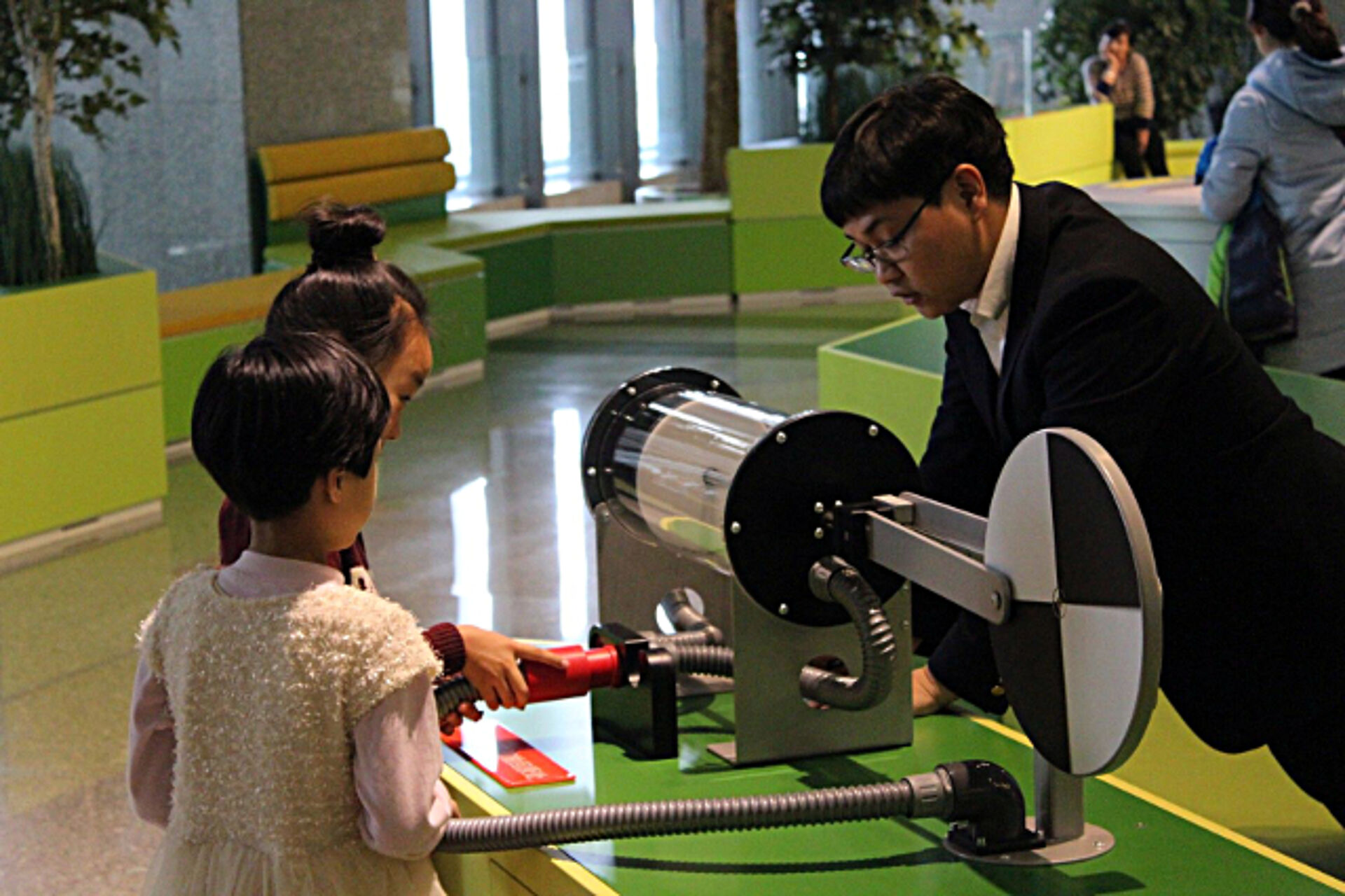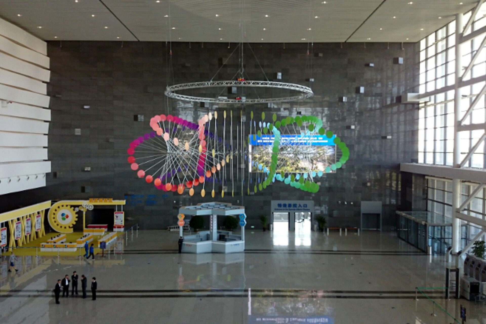 In May 2012, Hüttinger was awarded the contract for the master plan, schematic design, detailed design and fabrication of the Creation and Experience gallery within the LSTM in Shenyang, which was opened to the public in 2014. Within the same year we were contracted again. We were entrusted with the conceptual design, development and fabrication of Open Spaces and Excitement within the 1st floor of the museum. Visitors are now welcomed to play and discover within this area, on a total floor space of 500 sqm, equipped with 37 interactives and hands-ons. Moreover, brand new center piece of the museum‘s foyer is now a giant Kinetic Sculpture of 13 meters in diameter, slowly rotating on the ceiling.