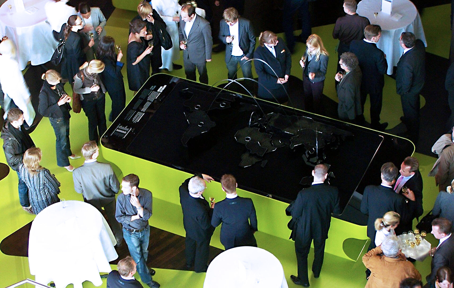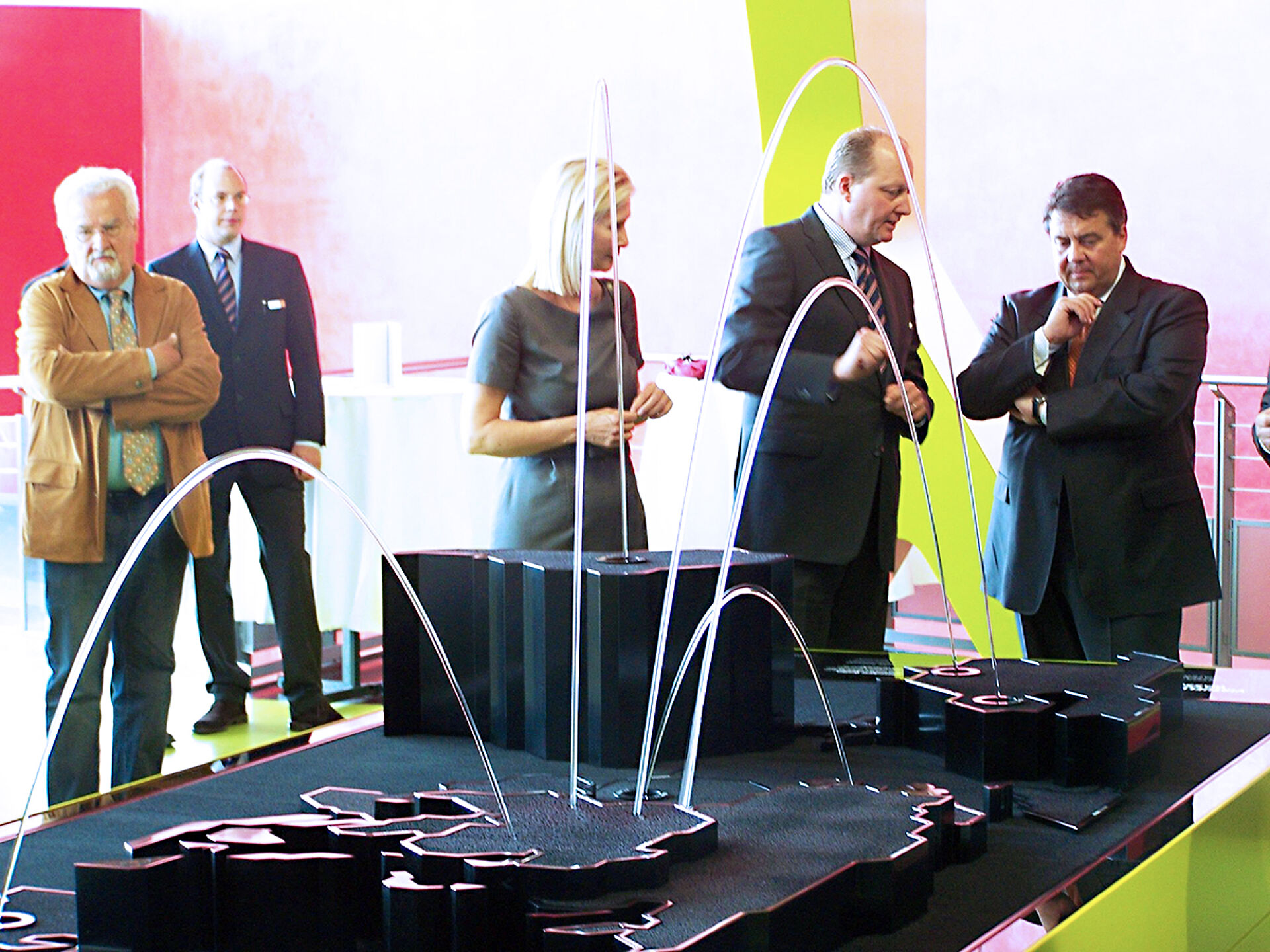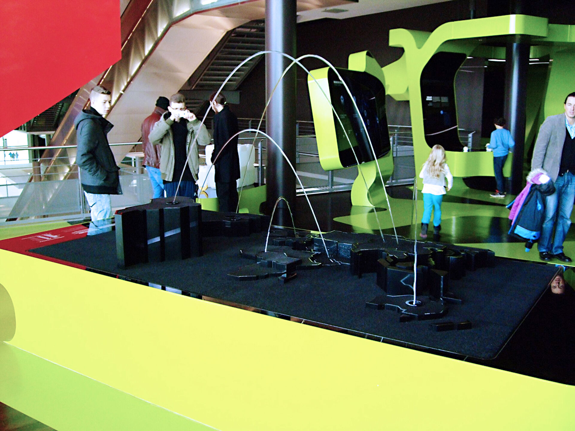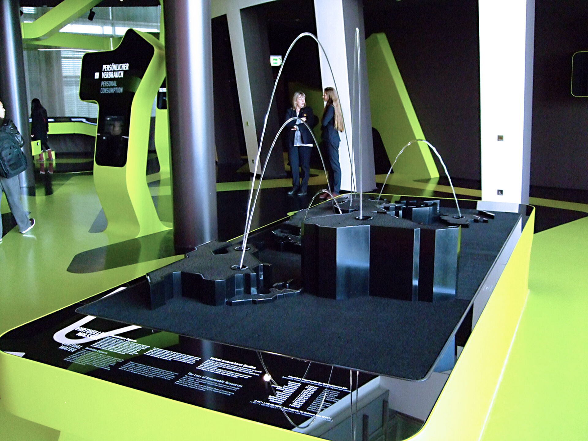 In January 2009, Hüttinger together with Art+Com was awarded the contract to develop and fabricate the sculpture Virtual Water to be installed into the Level Green - The idea of sustainability gallery within the VW Autostadt. Virtual Water, a sculptural fountain, shows the problem of water scarcity and distribution in a global perspective in an abstract way. Virtual Water refers to the water that was needed for the manufacture of goods. If for example a product is imported from South America to Europe, virtual water specifies, how much water was needed in the country of its origin.