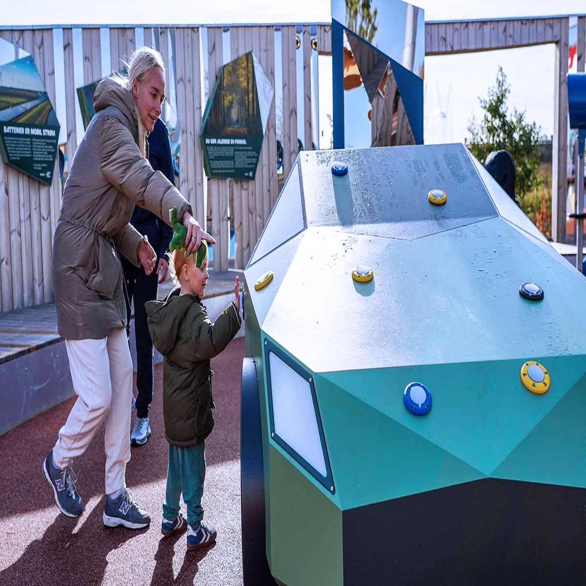 In April 2024 we were entrusted with the design and build of Jagten på den gode energi (lit. The Hunt for Good Energy). This outdoor exhibition was developed by Experimentarium and Norlys, Denmark‘s largest integrated energy and telecommunications group. The experience‚ turns electric car charging time into quality time‘ by providing interactive exhibits to discover and to play with, to then leave the space with more knowledge about energy technologies. Jagten på den gode energi at Norlys‘ car charging park Drejebænken, the first of five more outdoor exhibitions of this kind, opened Mid of October 2024.