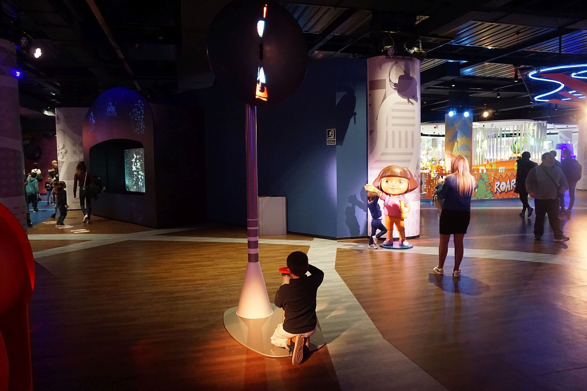 Climbing Tube Effects: Disguised within the crazy tangle of climbing tubes are a series of dual-sided lightboxes, triggered by passing climbers. They feature Nick toons making silly faces.