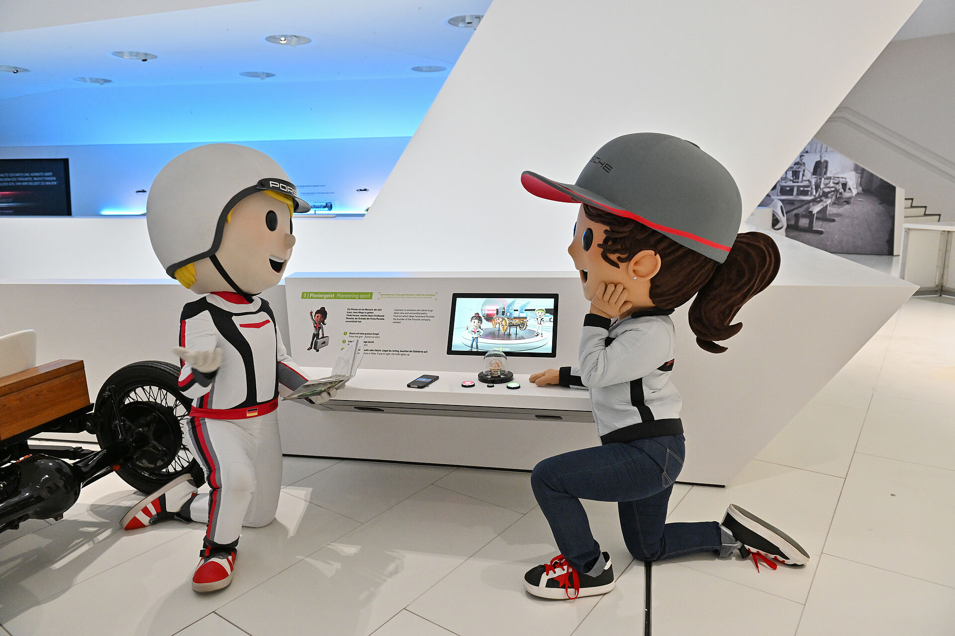 We were commissioned to conceptualize, design and manufacture the Porsche 4Kids experience stations in November 2022. These 12 interactive exhibits offer a playful experience for children in the Porsche Museum‘s permanent gallery. Porsche 4Kids was opened in the summer of 2023.