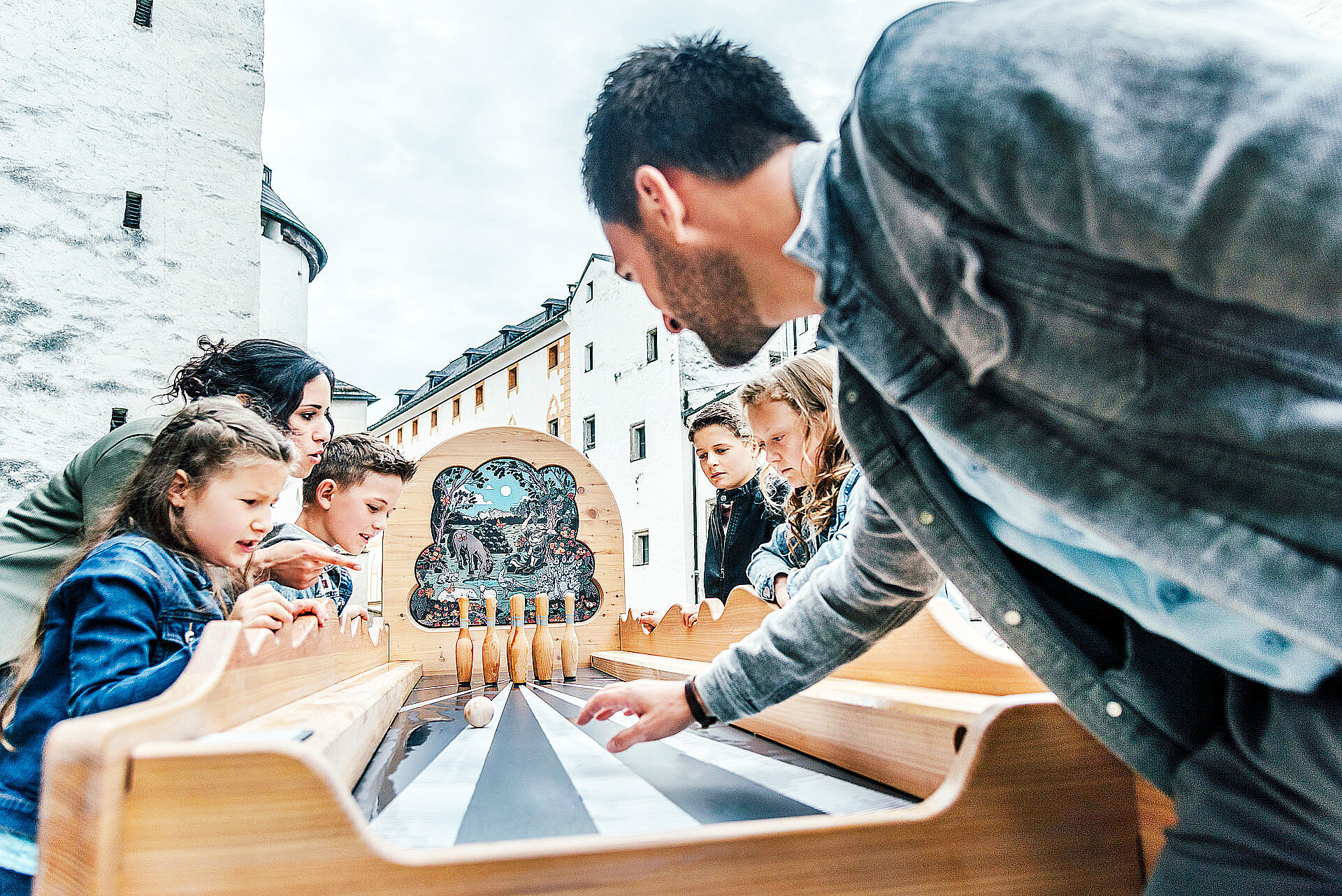 In January 2023, we were commissioned to design and build interactives for Fortress Hohensalzburg. The focus for their technical development was the year-round weather resistance and a particularly high robustness against tough usage due to very high visitor numbers. In the Summer of 2023, the Fortress Games, designed by Erlebnisplan, were officially opened to the public.
