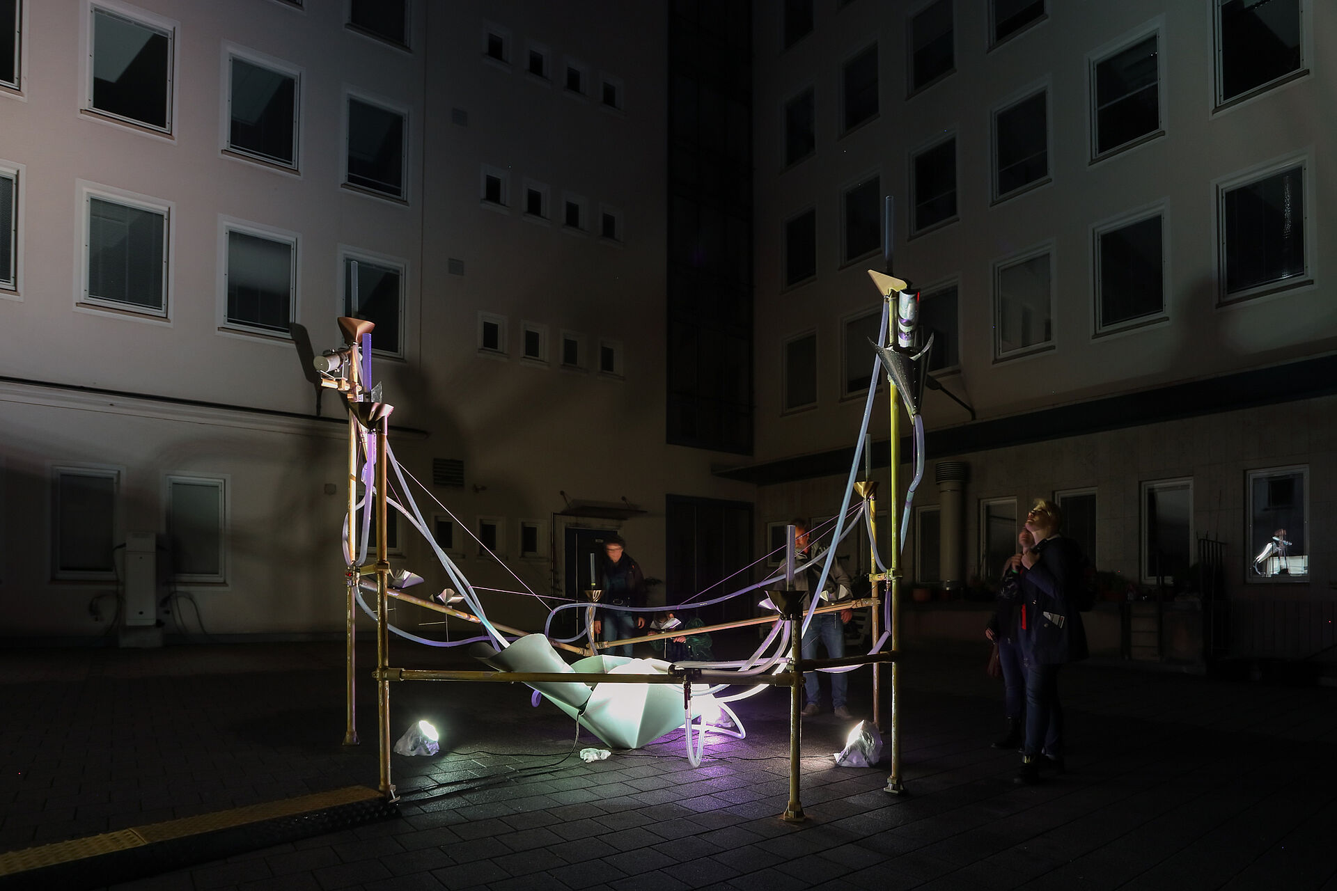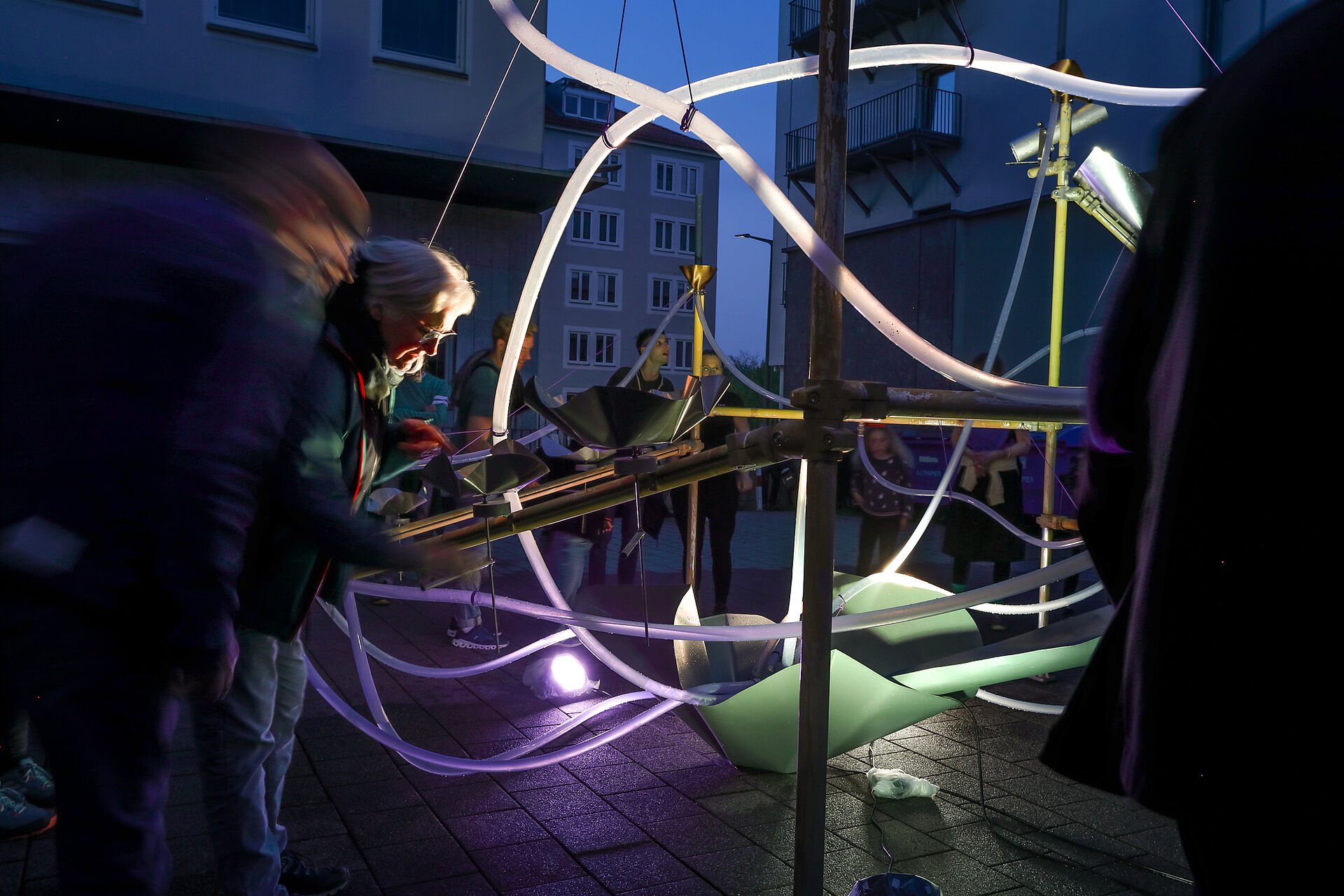 The Blaue Nacht audience became part of this water system through the interaction with 'our wet matters'. Theresa's work deals with our relationship to bodies of water and the visualization and creation of sounds in and through water. She graduated at the Nuremberg Academy of Fine Arts during the artist in residence project.