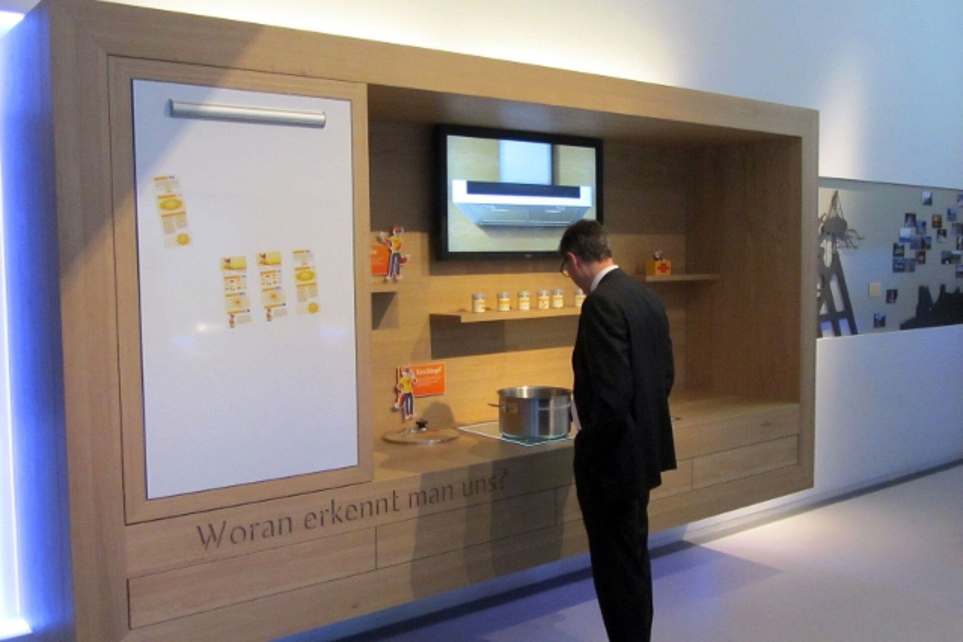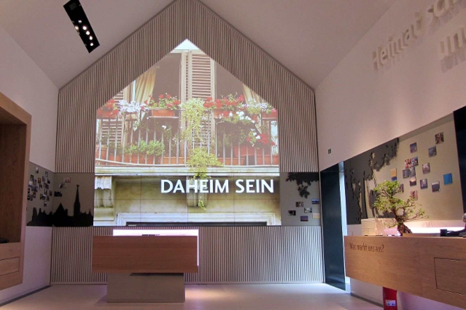 The German building society’s “Markenhaus” (Brand House) is an experience centre for 20,000 people who visit the head office annually. Covering an area of 60 square metres, the Brand House includes a kitchen, a dining room and a living room. The aim is to make the complex knowledge of the building society’s brand comprehensible and to communicate it in the long run. The panel with the brand history puts the visitors in the right mood for the topic. A quiz induces the visitors to concern themselves with the brand in a playful manner. In addition, information is given on the history of the company brand. The brand values of the building society are deepened in the living room of brand identity. A bonsai tree, for instance, symbolizes the company’s deep roots in the region, while binoculars offer a view of the foreign markets. In a small kitchen, the visitors can find out of which ingredients go into making a successful brand experience, and the Window of Visions, on the other hand, shows life concepts for the future. The newly designed foyer of the head office now welcomes the visitor with an area near the entrance that is designed as an island. Hüttinger developed and built this interactive exhibition.
