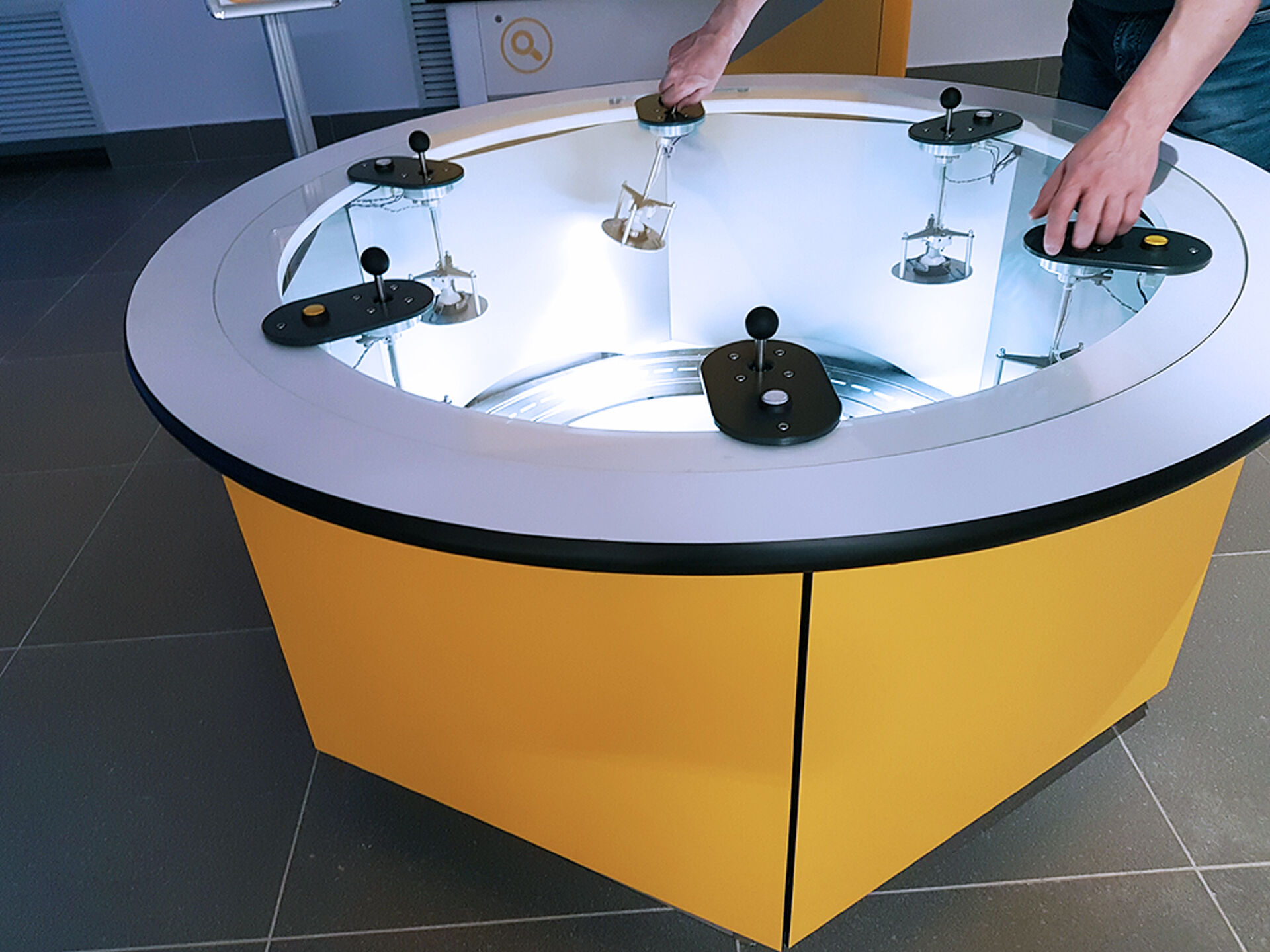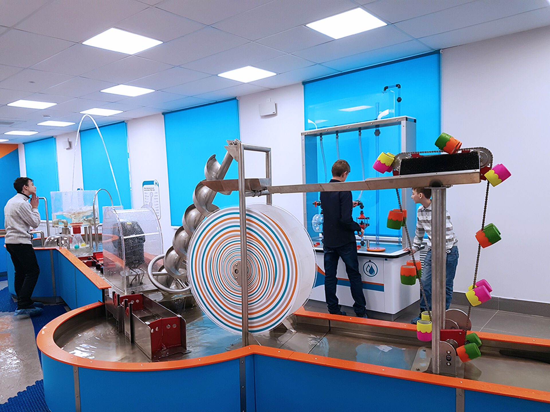 In March 2017 we, together with our Russian partner AZPI, were contracted to design, develop and fabricate some 86 interactives theming Mechanics, Optics, Acoustics and Hydraulics for the brand new Интерактивная зона КВАНТОШКА (lit. Interactive Zone Kvantoshka) at Children‘s Technopark Kvantorium in Cherepovets, Russia. КВАНТОШКА was officially opened to the public end of December 2017.