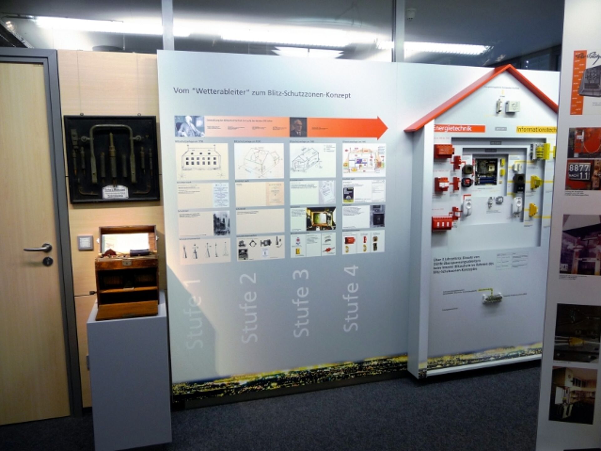 In July 2008, Hüttinger was awarded the contract for conceptiopnal design, technical planning and production of an exhibition on the occasion of the 100th anniversary of Dehn + Söhne company. The exhibition shows the history of the company, the products that it developed down through the years as well as exciting research-anddevelopment results and information from its subsidiary DEHN INSTATEC. It was officially opened to the public in a festive ceremony on 21 January 2010, the 100th anniversary of the founding of the company.