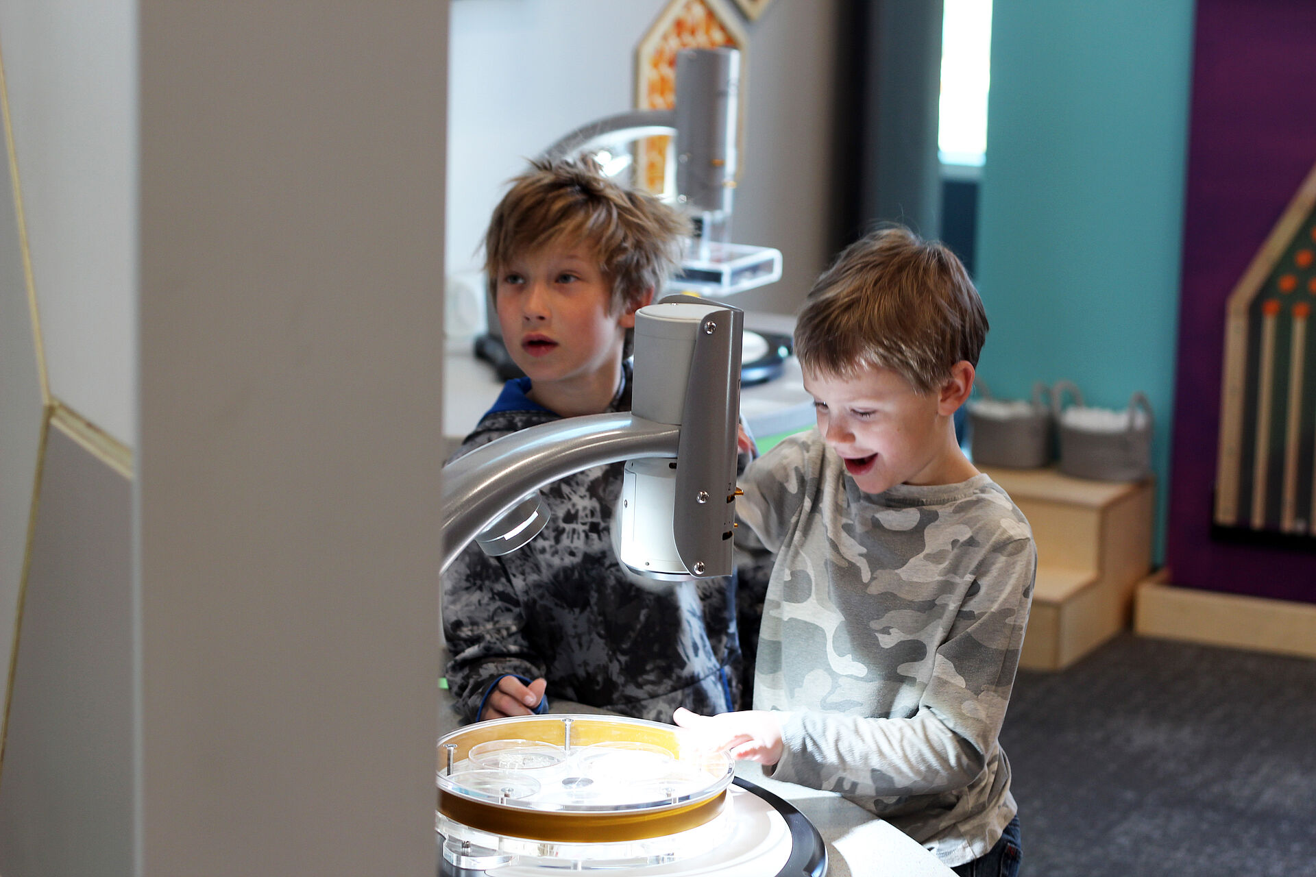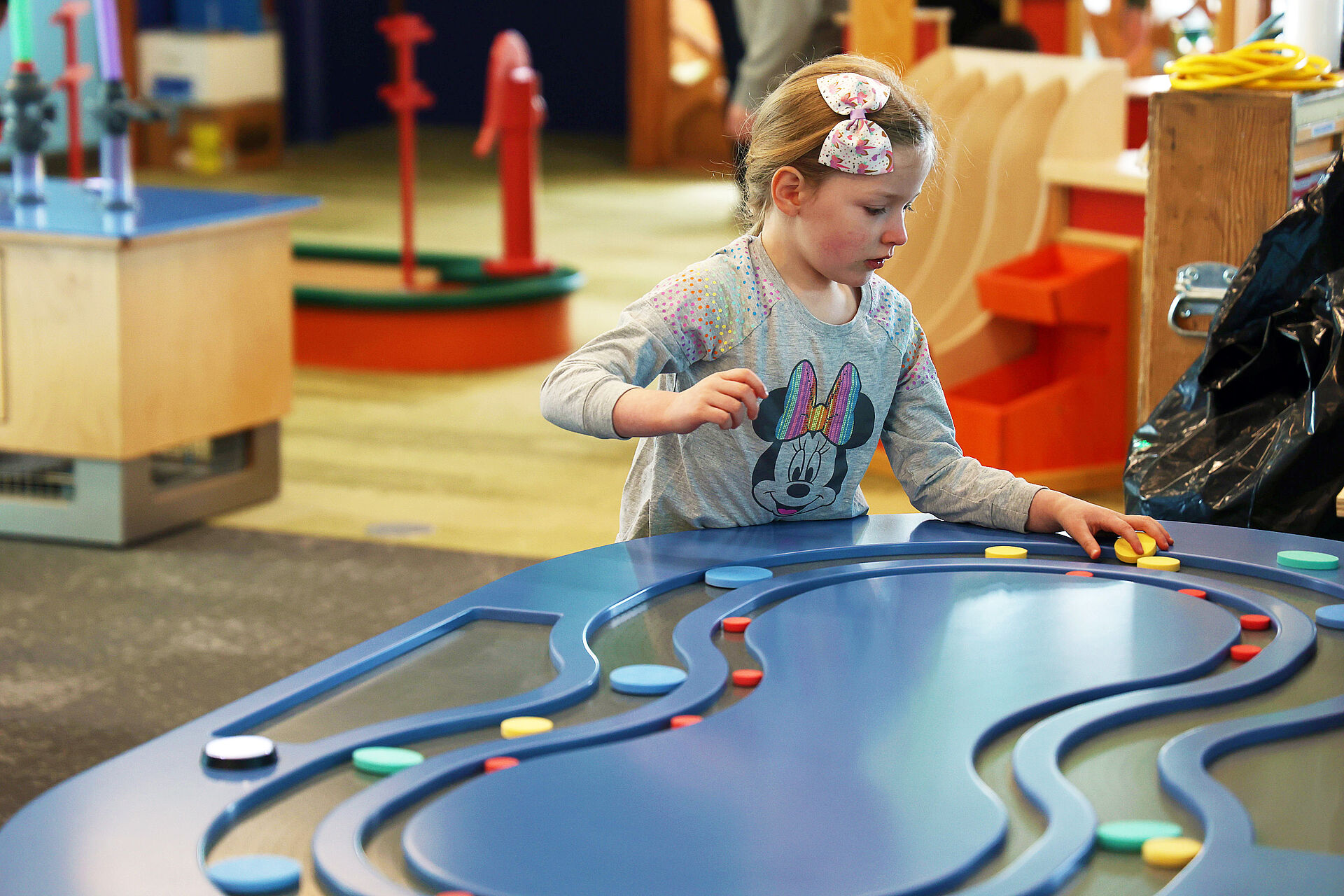 In June 2021, we were contracted to design and fabricate interactives and a waterscape for the Water Flow, Air Forces, Pattern Place and Light Lab galleries at Magic City Discovery Center in Minot, North Dakota. The center is an amazing multi-level hybrid children‘s museum / science center with over 150 interactive exhibits on a 28,000 sq ft floor space with 12 major galleries plus an outdoor patio and was officially opened in April 2023.