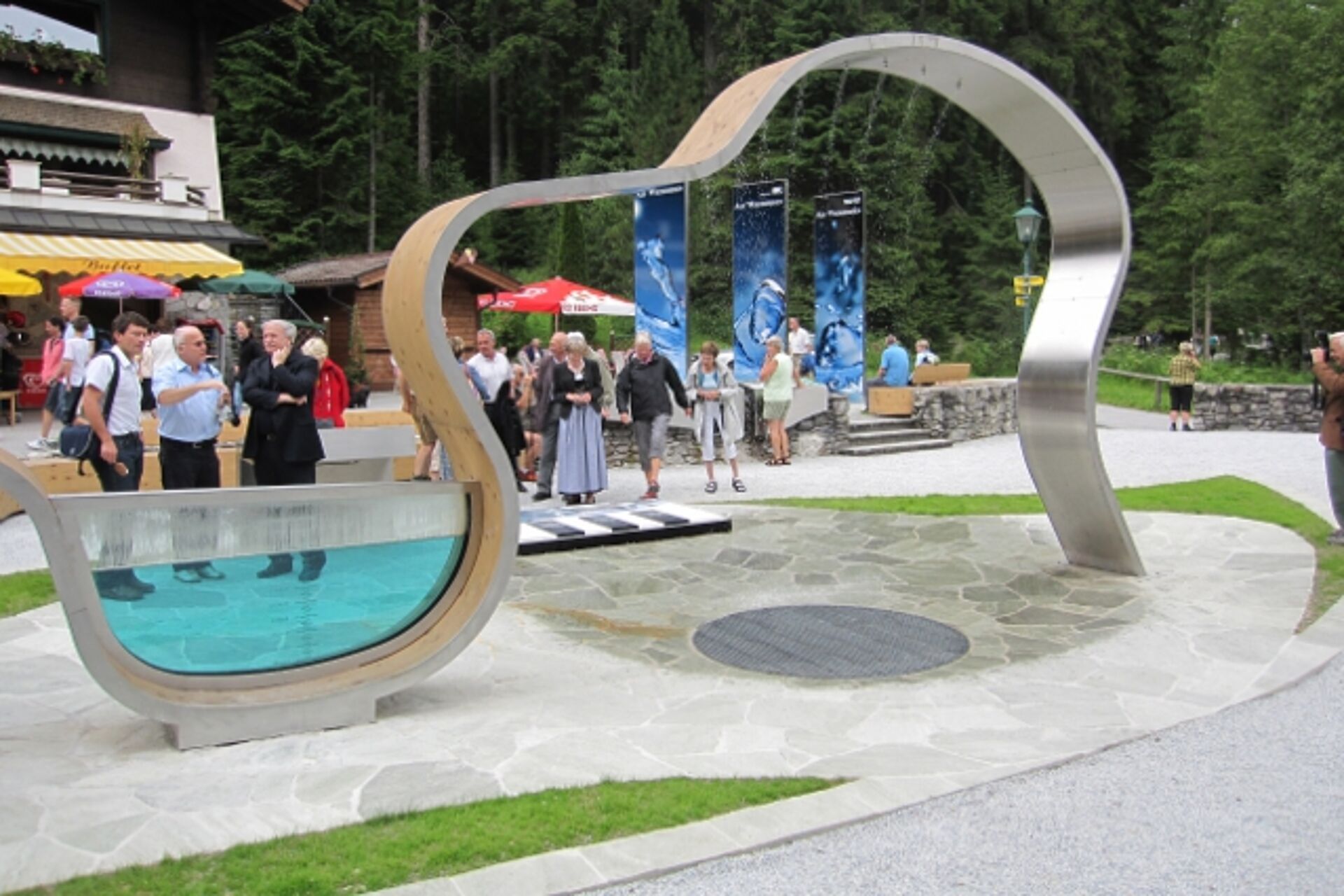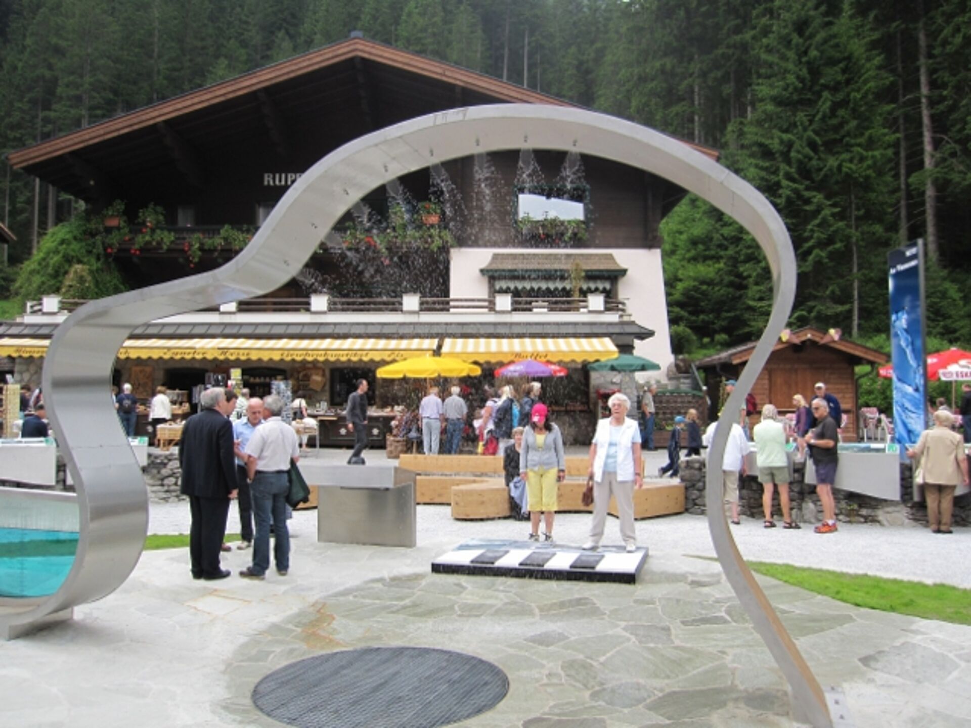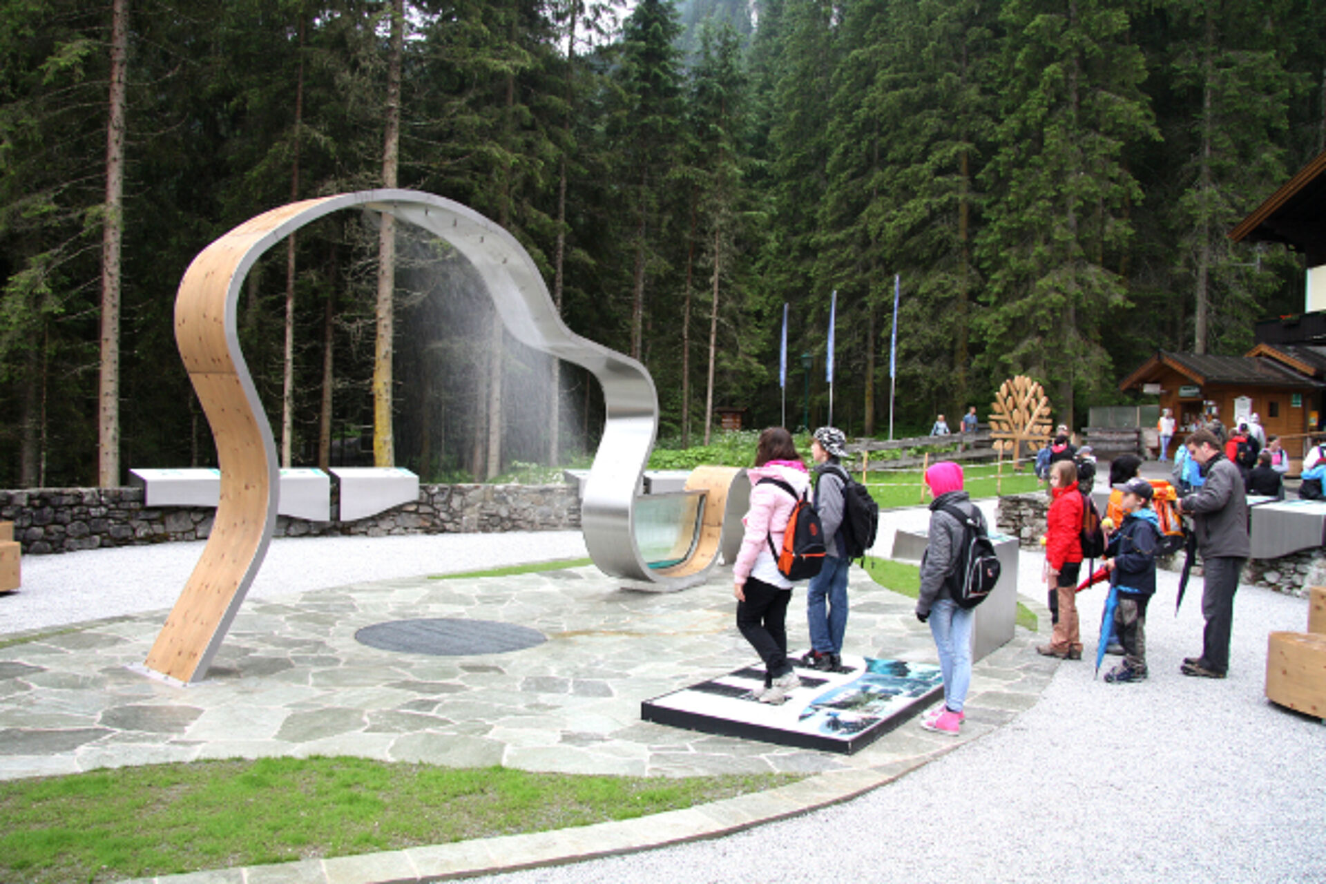 In connection with the redesign of the entrance zone of the Krimmler Waterfalls in the Hohe Tauern National Park in April 2010, Hüttinger was awarded the contract to develop an interactive water feature high-lighting the influence and the interaction of different factors – both natural and human – on the force of the waterfalls. The new entrance zone was opened to the public in June 2010.