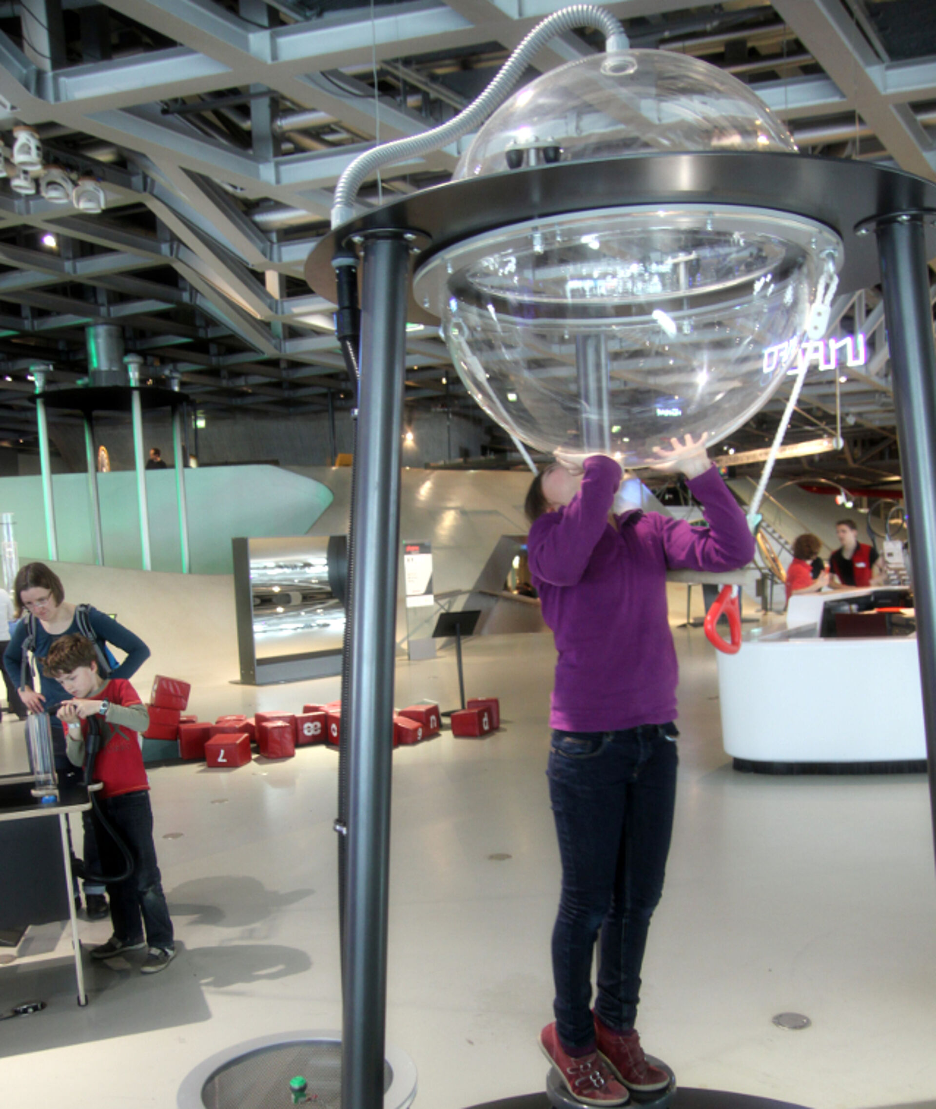 Air is so much more than just plain “nothing”. The newest special exhibition is focusing on the physical properties of air. What’s the air resistance of different objects? How strong is air pressure? Is air capable of lifting heavy objects? Those are only a few of the questions that will be answered. Some 25 interactives are on show within AAAAAIR – light as a feather and heavy as a ton from March 22 until February 8. Hüttinger was contracted with the design and build of the Air Cushion exhibit, Magdeburg Hemispheres and Pneumatic Sofas.