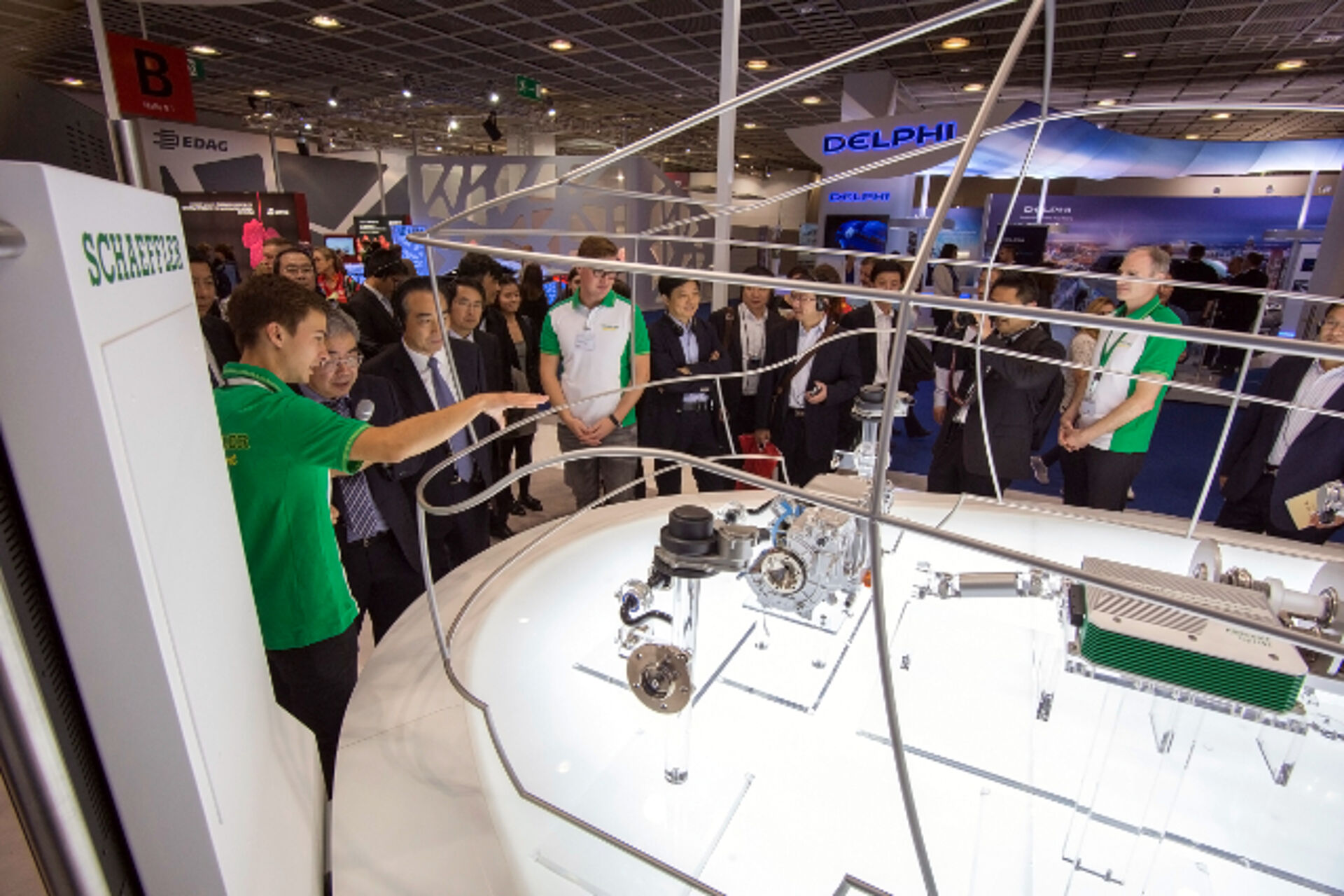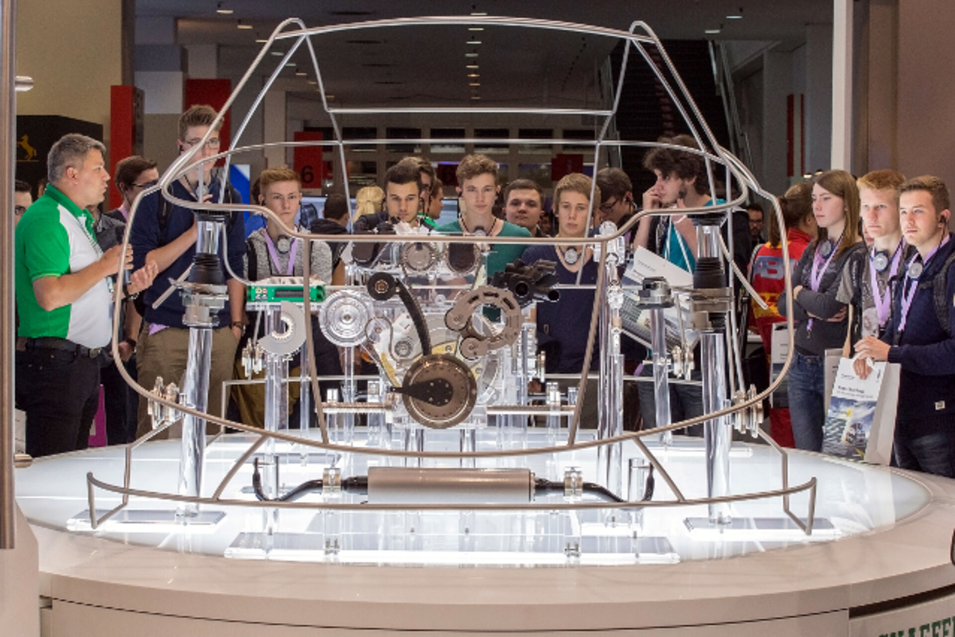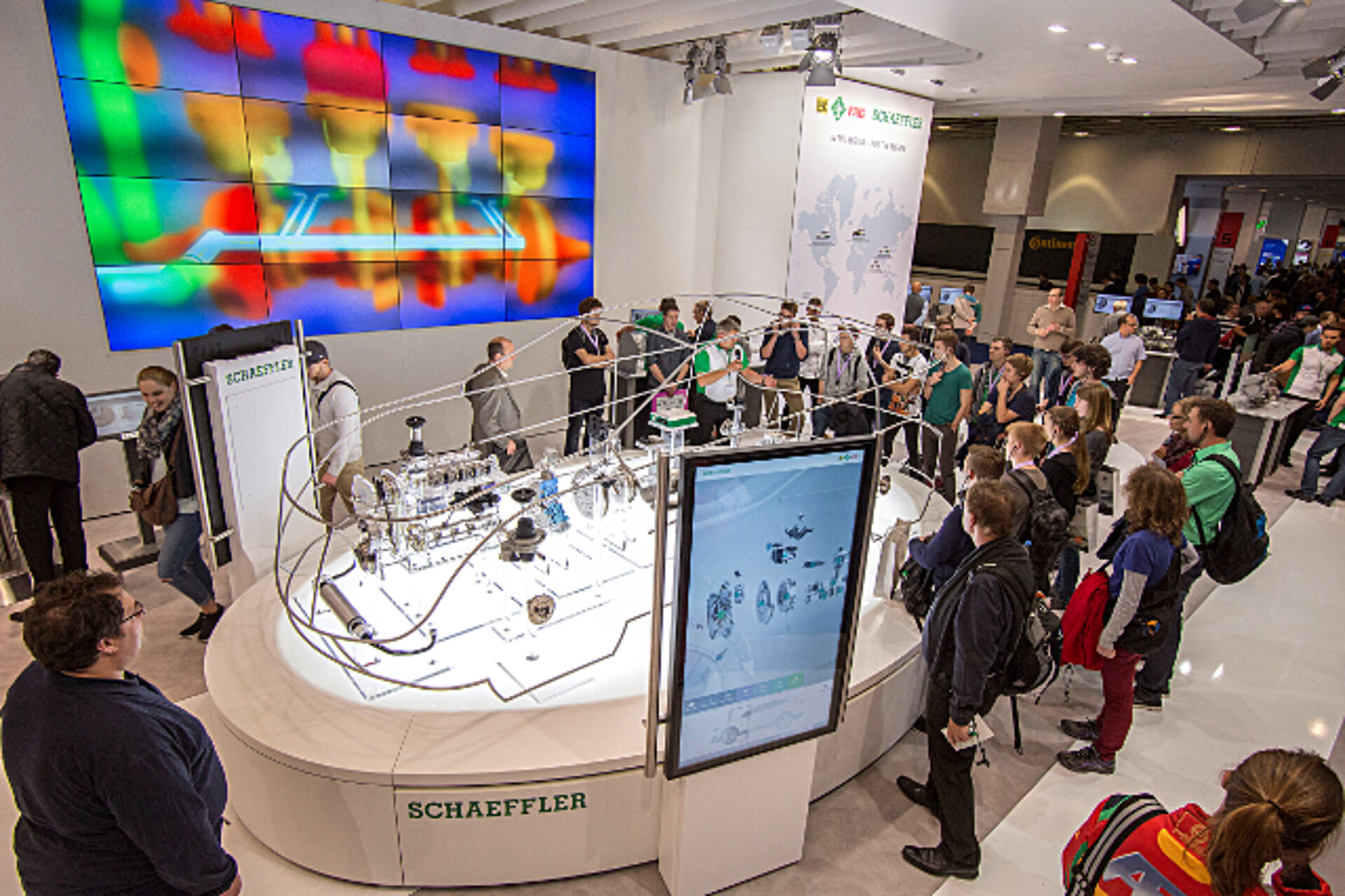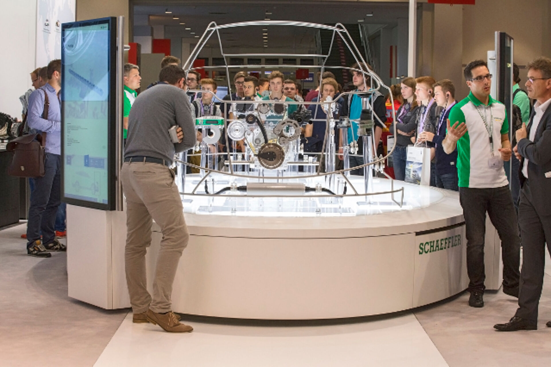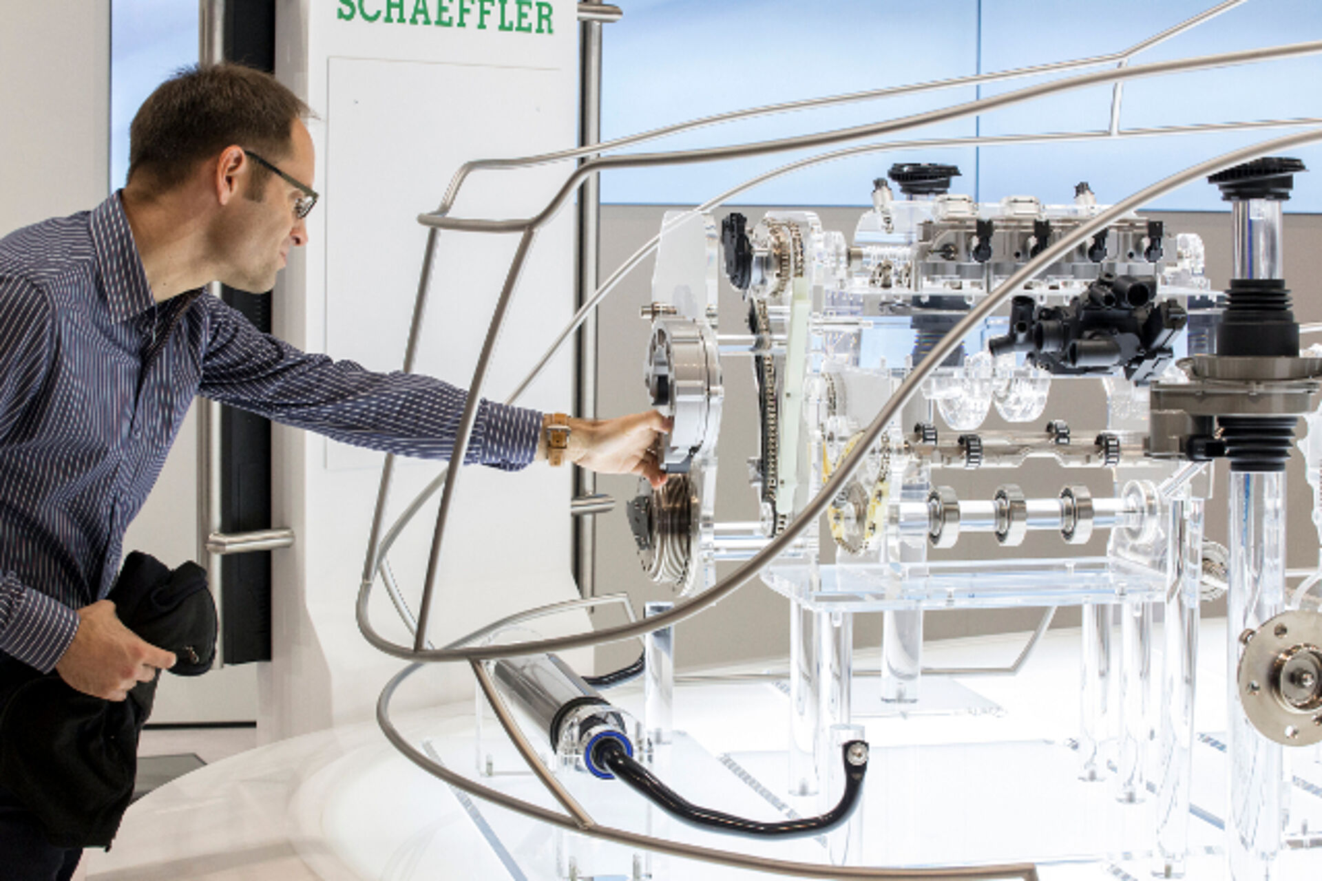In February 2015, we were entrusted with the development and construction of the main exhibit of the current Schaeffler fair appearance. The so-called Glass car is a scale model peppered with Schaeffler products and technology showing the Schaeffler products at trade fairs, events and exhibitions vividly. Touchscreens offer detailed information about the individual products. The Glass carpremiered at the IAA Cars 2015 aka. Frankfurt International Motor Show 2015.