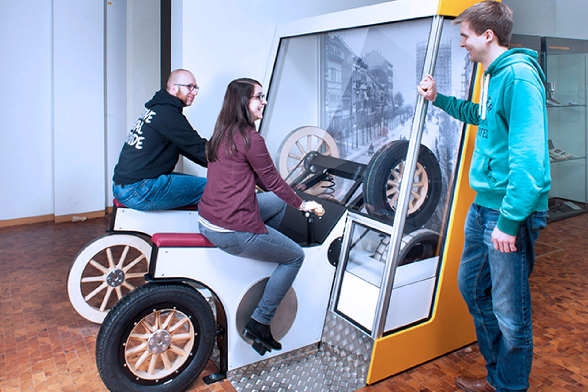 Hüttinger has developed and built the interactive exhibits Rubber Tire vs. Steel Tire and Assembly Line vs. Workmanship. Since mid-March 2017 the new exhibition area has been opened and the new exhibits are in use.