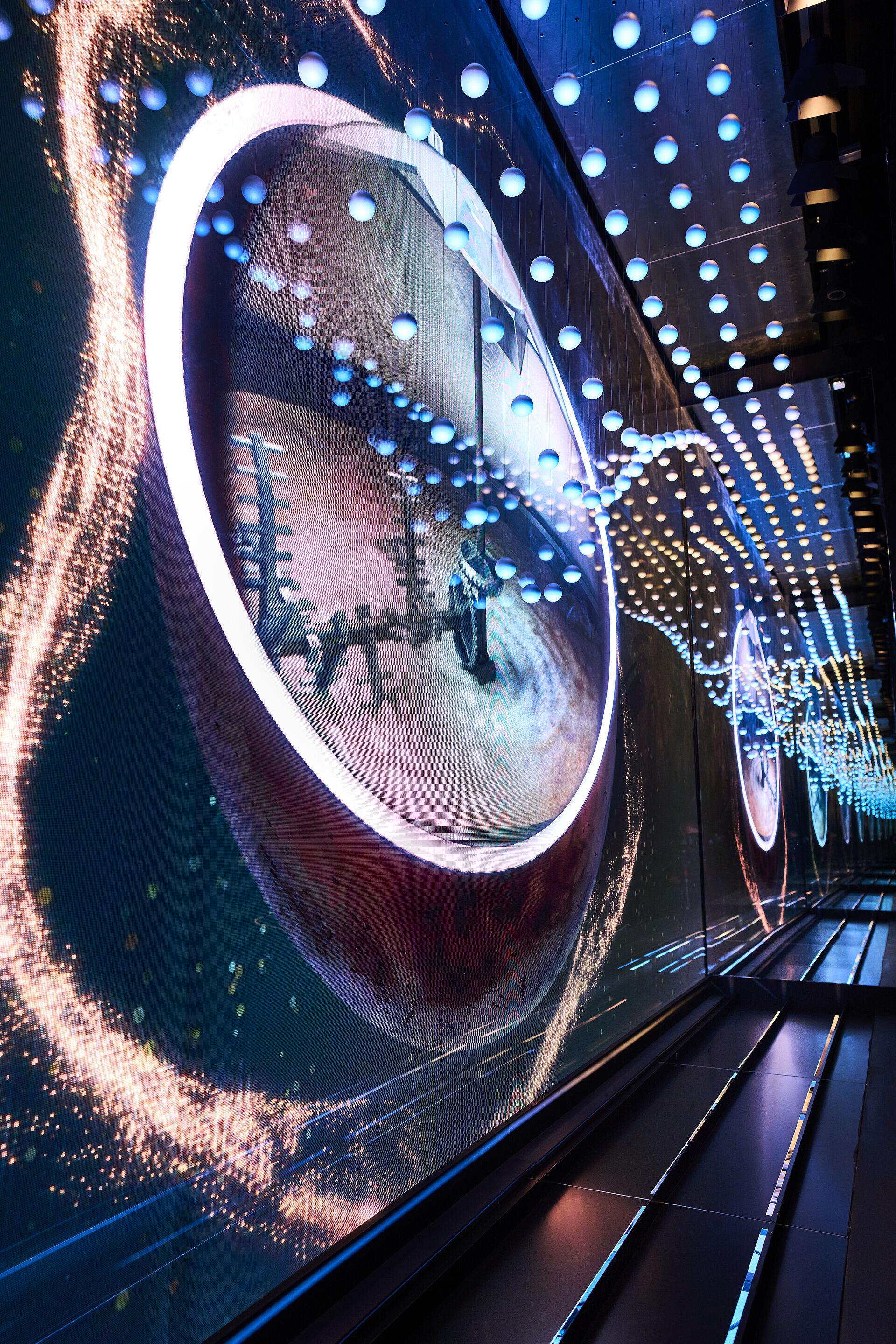 In 2022 we were contraced to design and build a 5m long and 3,5m high kinetic sculpture with 200 floating spheres for Spirit of Whisky, a part of the new ‚immersive journey‘ within The Scotch Whisky Experience. The project, led by attraction designers Hatto+Partners, aims to inspire with a blend of design and technology, delivered through live and virtual storytelling and was opened in Spring 2023.