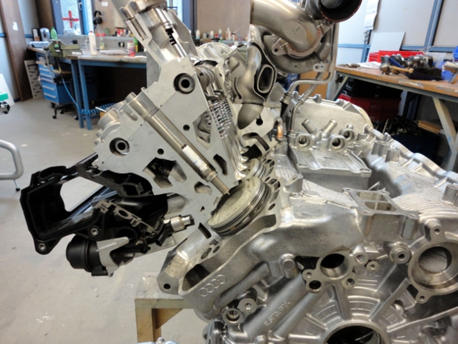 Das weitere Modell gibt Einblick in die V8 4,0l Biturbo Aggregat Technologie der Audi AG.