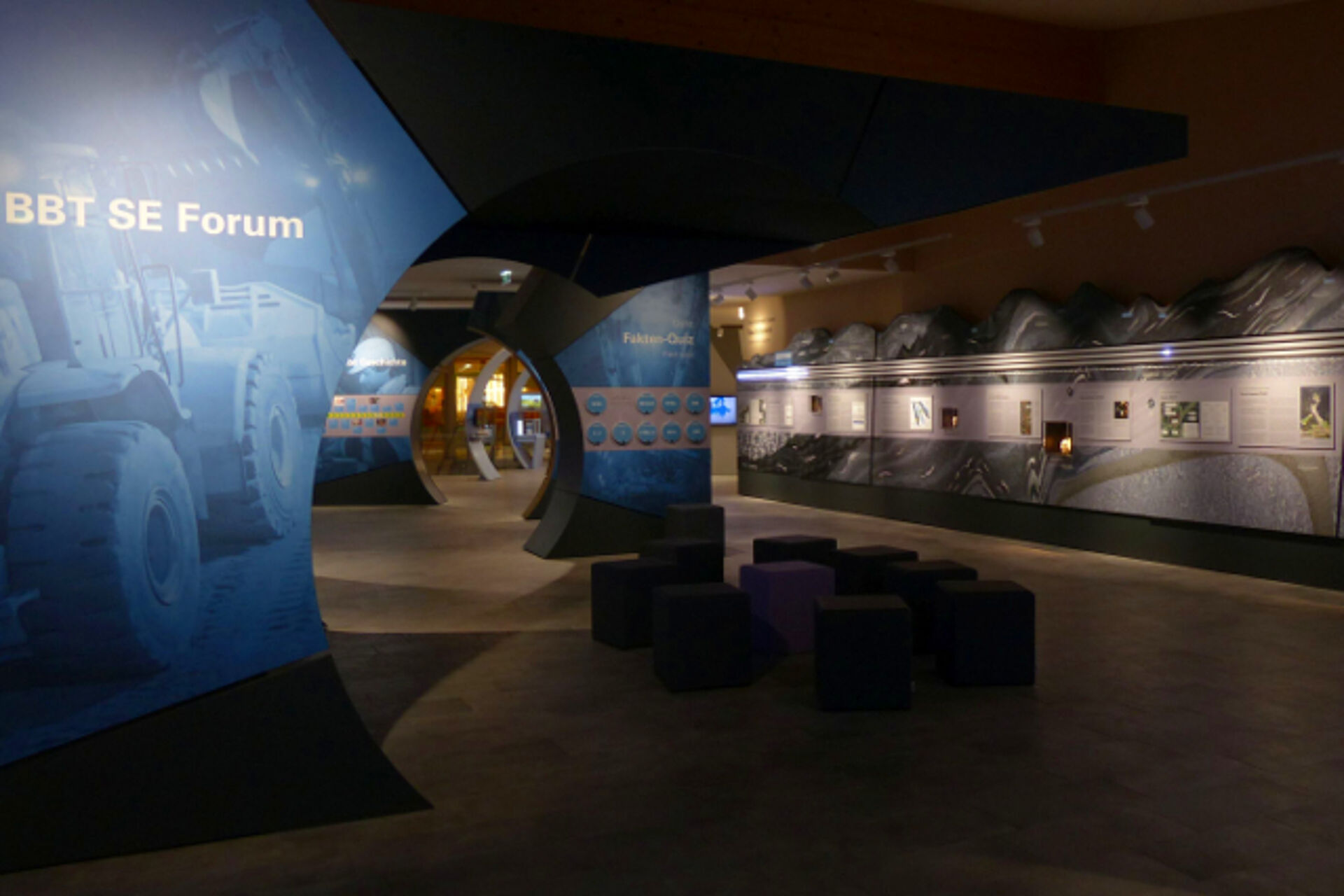 Im Mai 2015 wurden wir mit der Umsetzung der BBT Tunnelwelten, dem neuen Infocenter des Brenner Basistunnels in Steinach, beauftragt. Das 800 m² große Infocenter in Steinach ist Anlaufstelle für Anrainer, Startpunkt für Baustellenbesichtigungen und Erlebnisausstellung zugleich. Die Tunnelwelten erstrecken sich über zwei Ebenen und umfassen einen echten Schaustollen, zahlreiche interaktive Ausstellungsstücke, die speziell für jüngere Besucher entwickelt wurden und diese zum Mitmachen einladen, sowie einen eigenen Bereich für Fachexperten. Spannendes rund um den Tunnelbau, die Berggeologie, die Geschichte des Brenners, Natur und Umwelt und physikalische Gesetzmäßigkeiten sind nur einige der Themen, die in der Ausstellung erklärt werden. Nach einer kurzen Testphase öffnen die Tunnelwelten ab 5. April ihre Tore für die Öffentlichkeit.