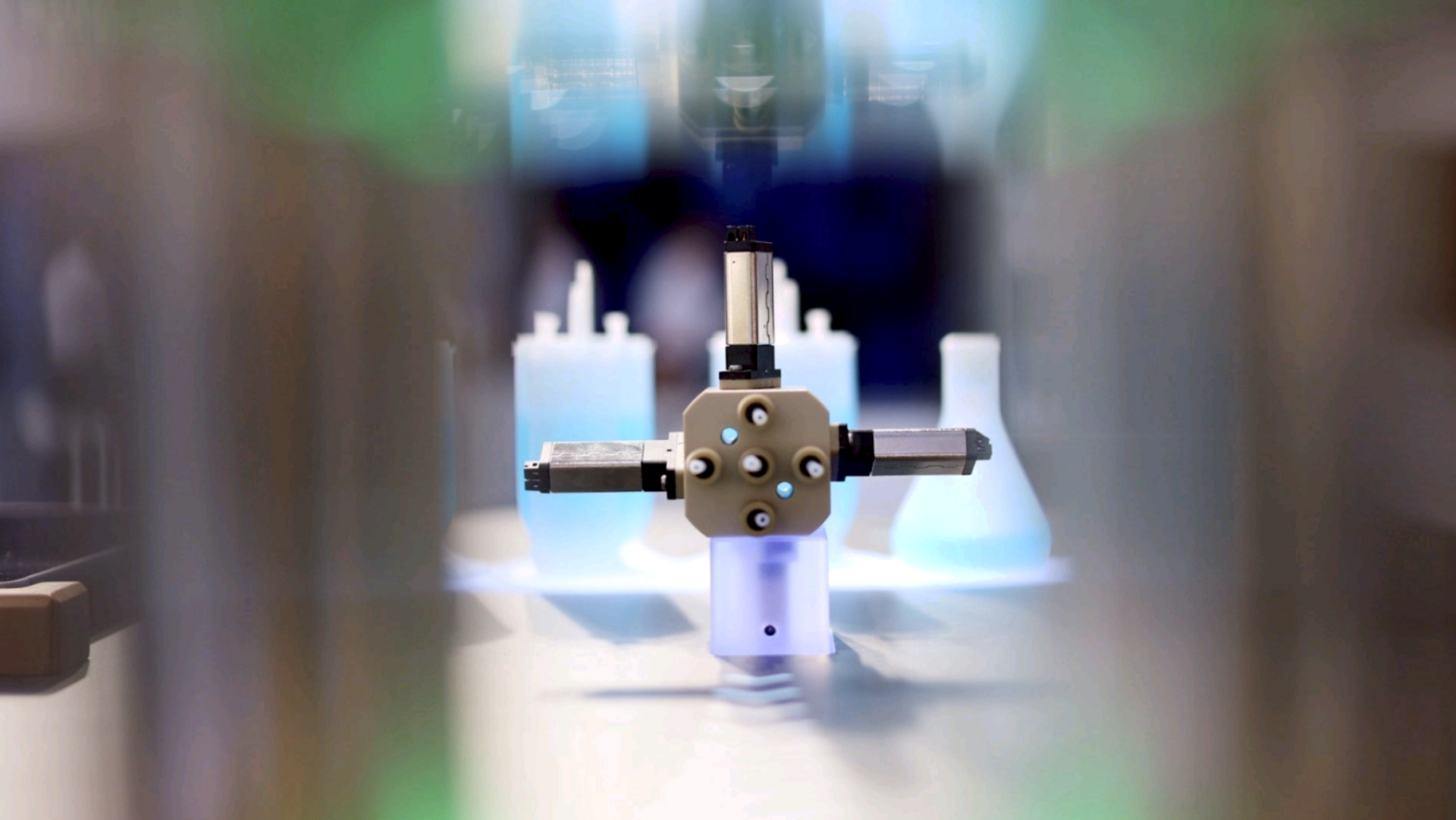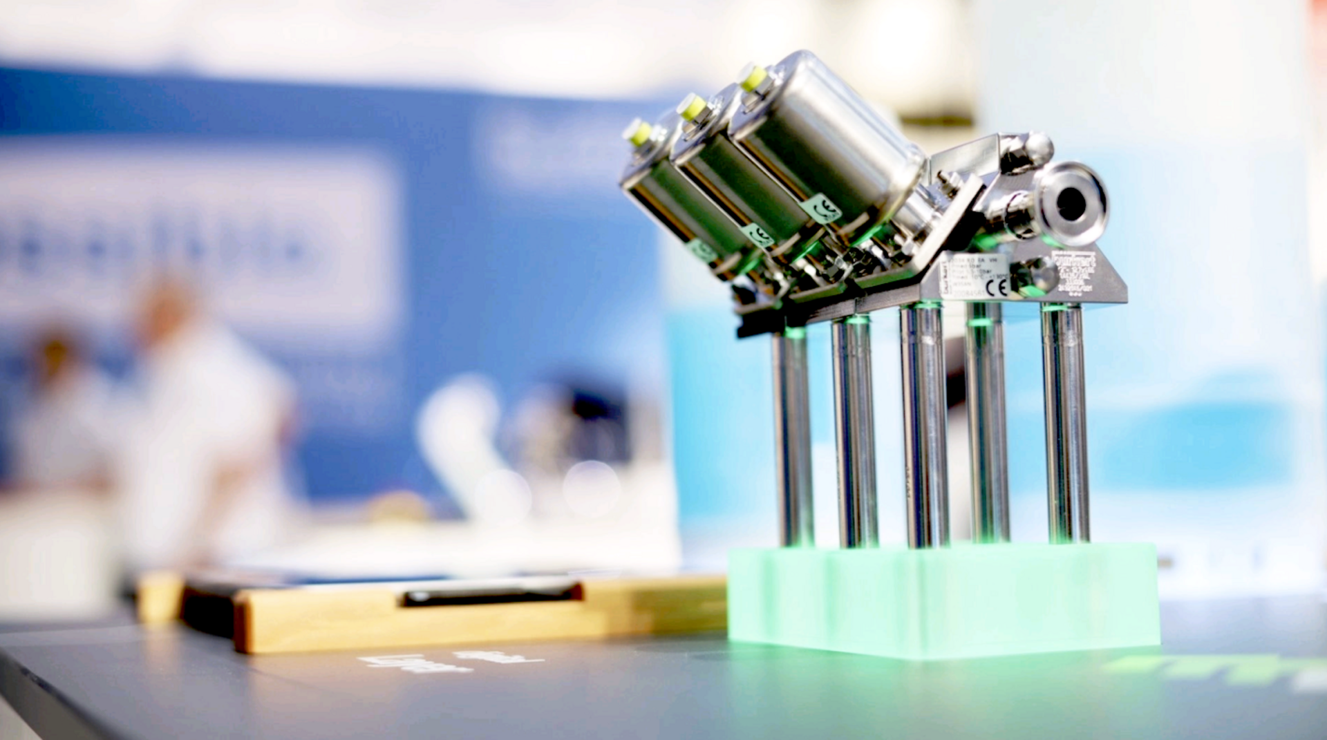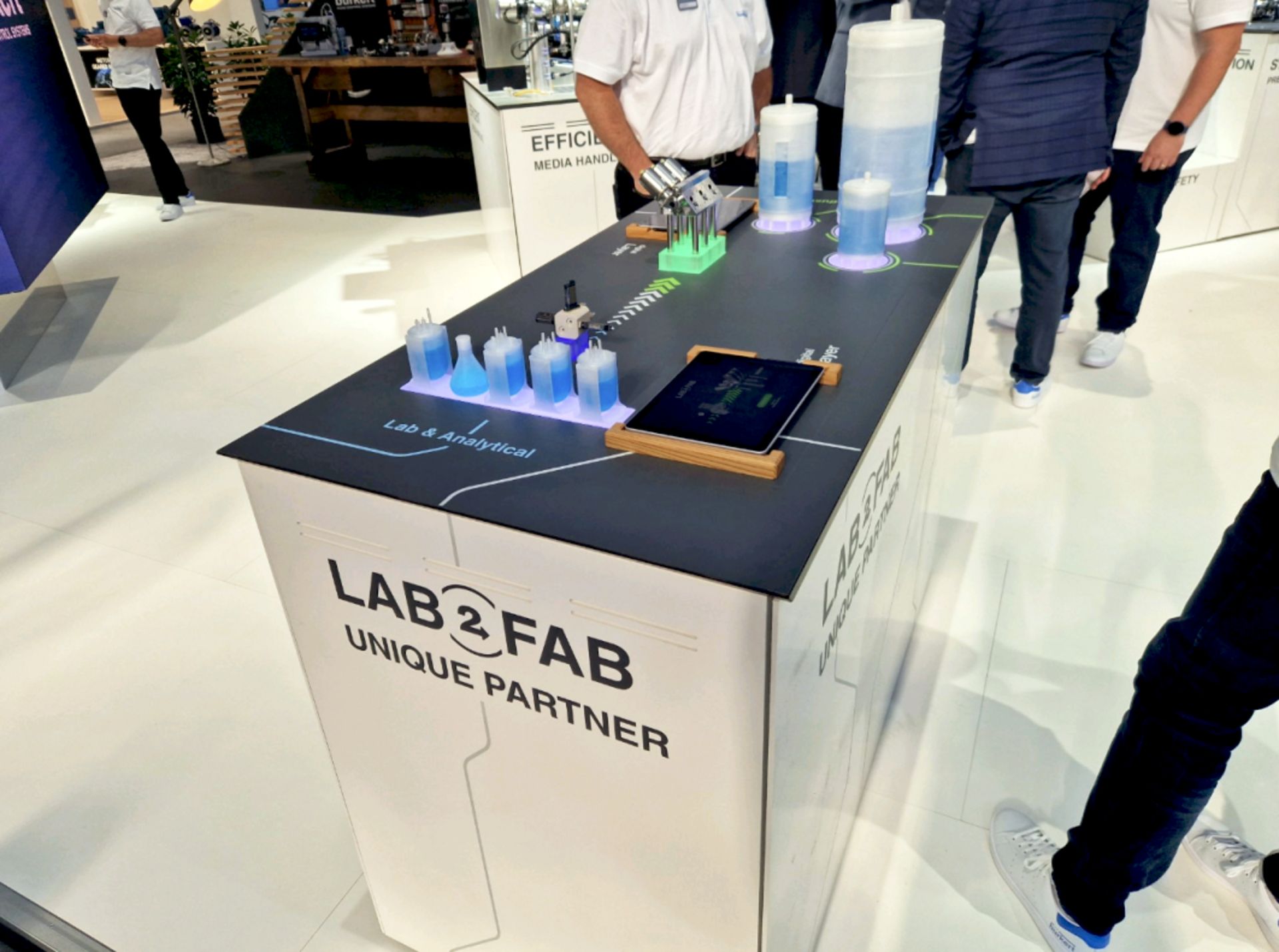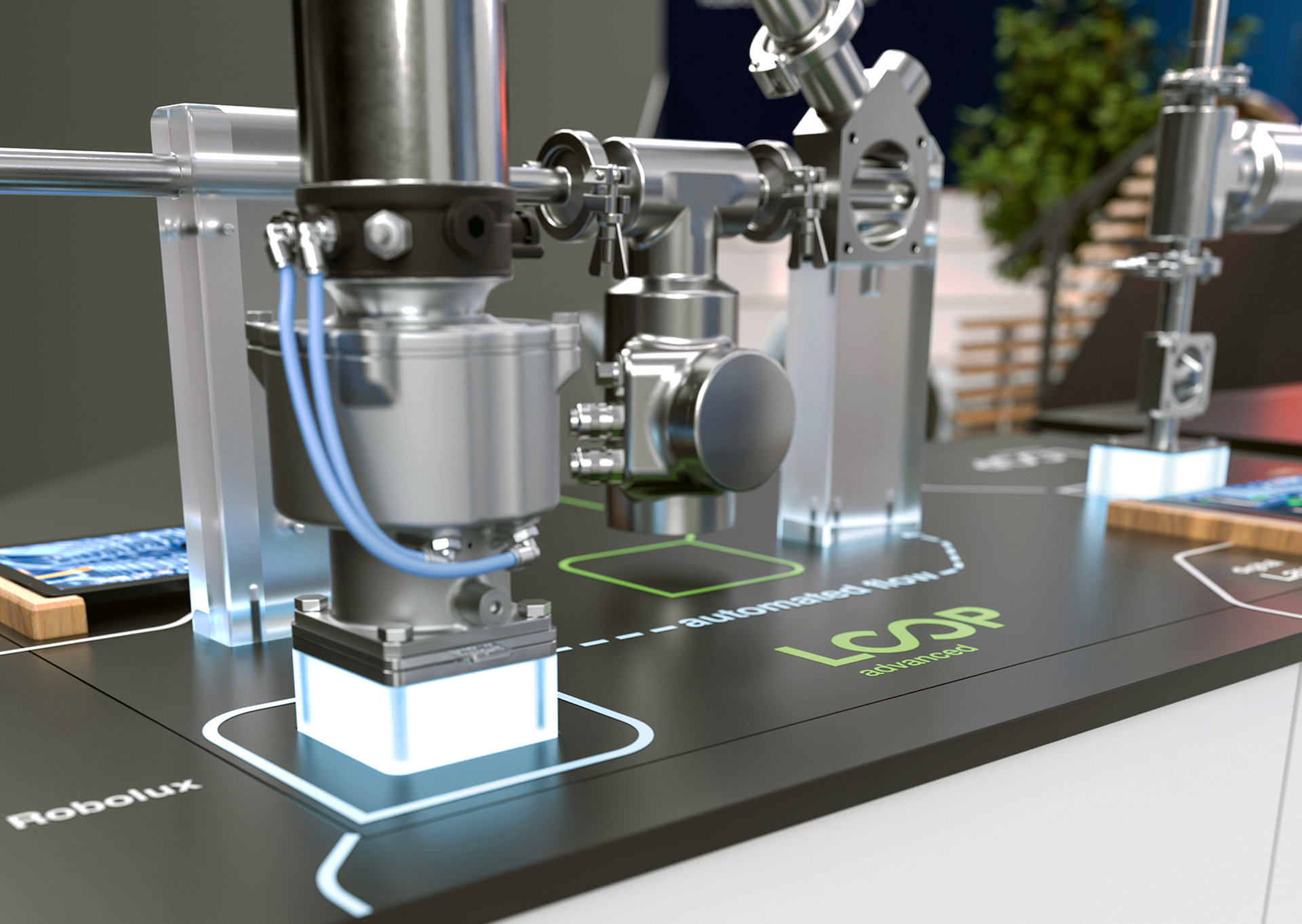 Wie innovative Fluidiklösungen dazu beitragen können, Pharma- und Biotech-Prozesse ökonomisch und ökologisch nachhaltiger zu gestalten, können Besucher des Bürkert Messestandes erleben. Präsentiert werden Themen wie z.B. Batch-Dosing für präzise, verlustfreie pharmazeutische Abfüllprozesse, die zudem eine moderne Benutzeroberfläche und eine automatische Nachlauf- bzw. Überlaufkorrektur bieten. Das Beispiel eines Chromatografie-Blocks zeigt, wie sich die gesamte Prozesskette vom Labor bis zur Fabrik skalieren lässt. Zudem gibt es die Möglichkeit, die Funktion fluidischer Komponenten selbst auszuprobieren. Wir durften für diese Messepräsentation die Expontate WFI Loop, Upscale und Bag Inflation entwickeln und fertigen, welche auf der Achema in Frankfurt erstmalig gezeigt wurden.