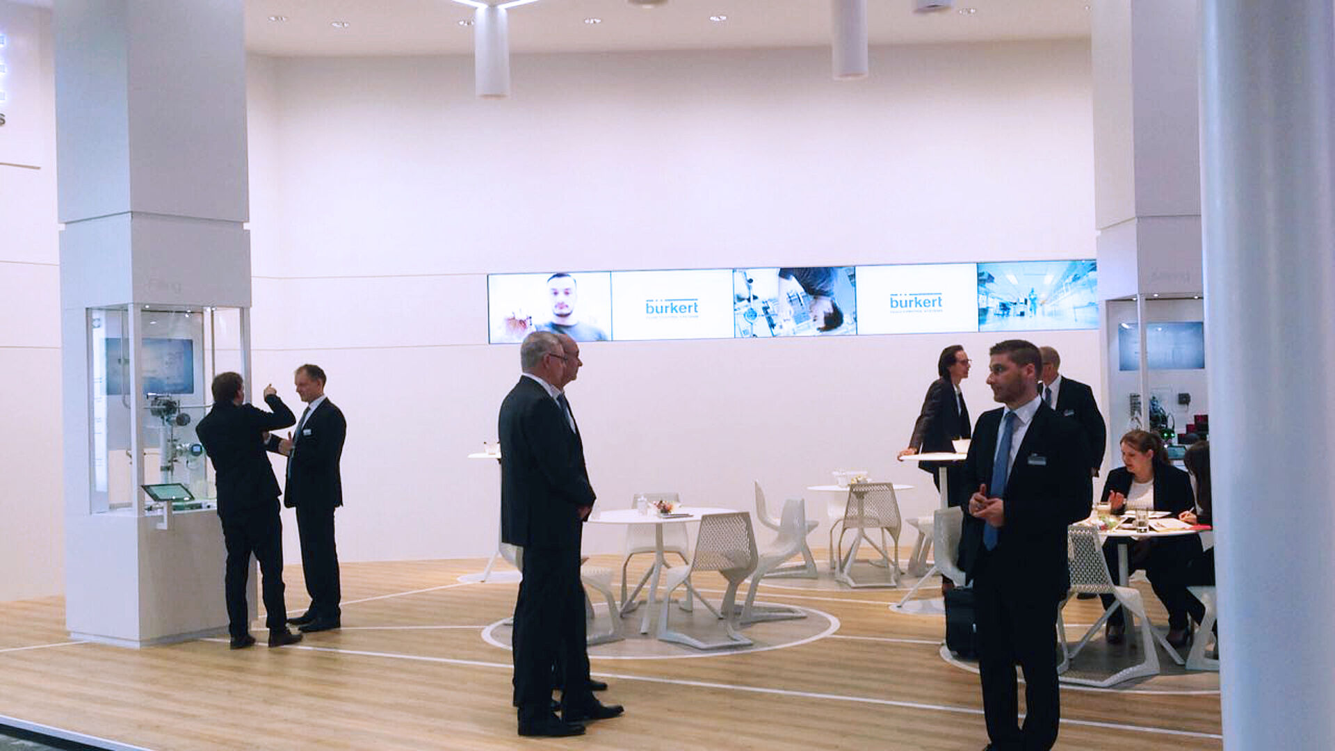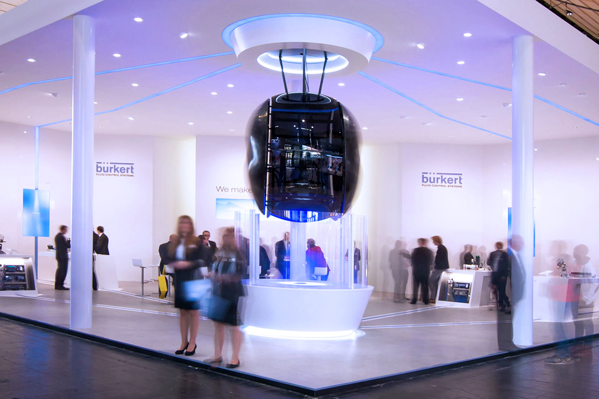 Im Januar 2018 wurden wir mit der Entwicklung und Fertigung von Produktstelen zur Präsentation der Bürkert Application Machines auf der Hannover Messe betraut. Die Exponate zeigen Bürkerts hochgenaue Druckregelungen für Fluids, Luftgemische und Kleinstmengen Flüssigkeiten. Eye catcher des Messeauftritts war die von uns gefertigte Competence Machine.