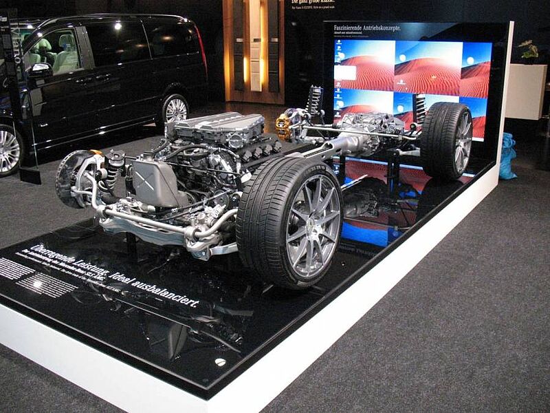 Das Exponat wurde für eine Presseveranstaltung Anfang Februar 2009 in Affalterbach fertig gestellt und zeigt den Fahrstrang des neuen Mercedes AMG SLS-Sportwagens inkl. Mittelfrontmotor und Torque Tube. Die öffentliche Präsentation des SLS erfolgte auf der IAA Pkw 2009.