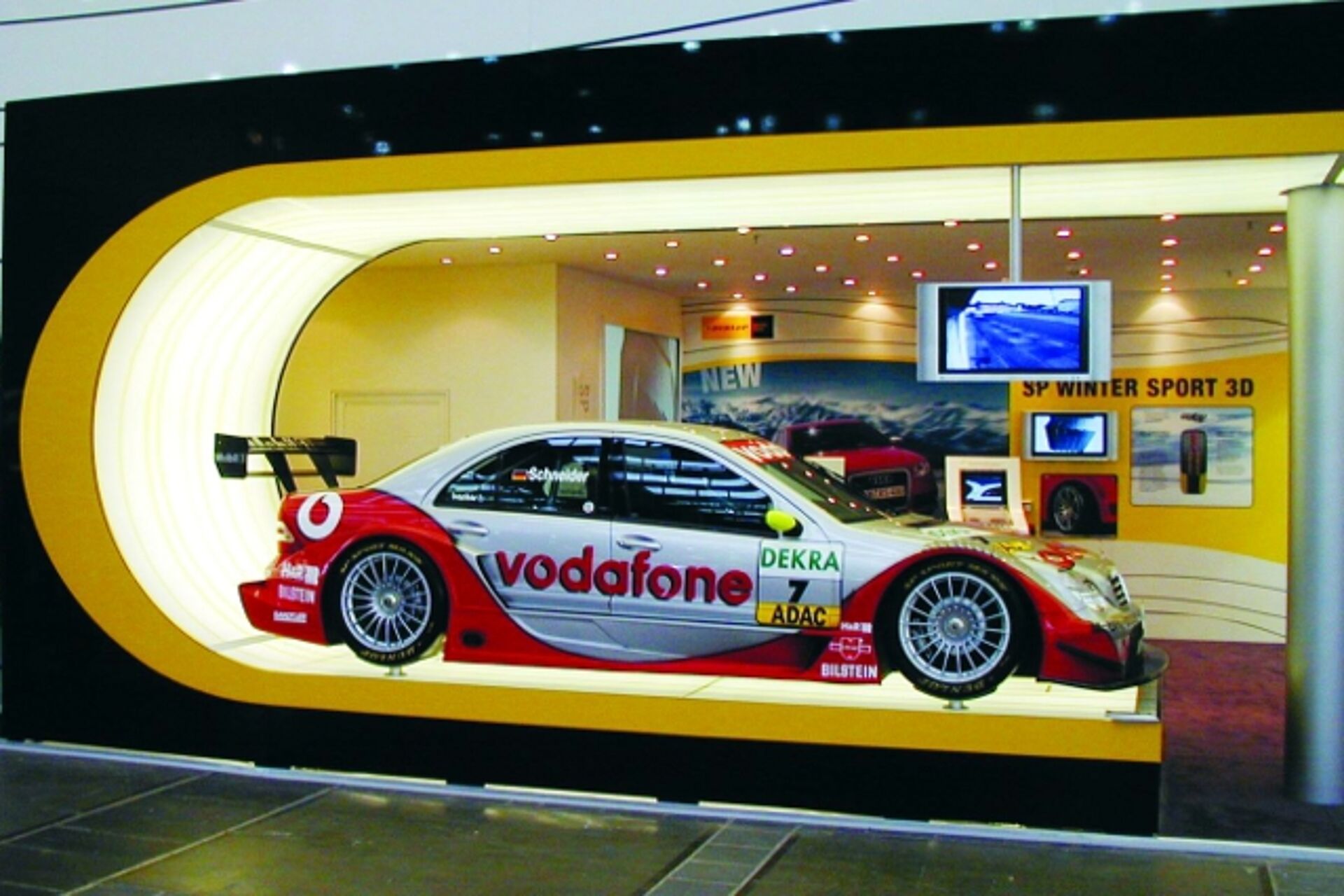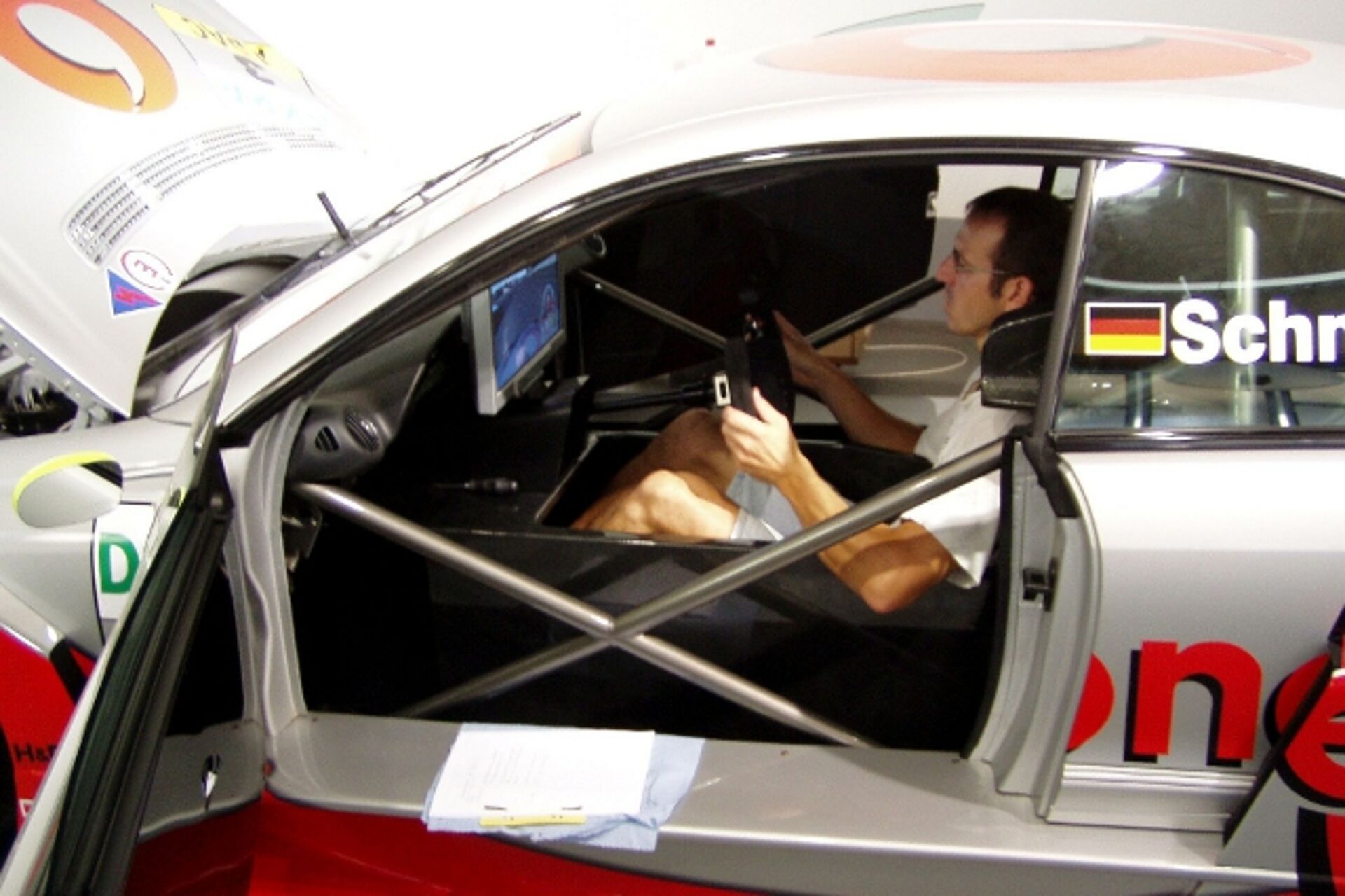 Der Mercedes DTM Fahrsimulator ist ein Schaustück auf zahlreichen Automobilausstellungen: die Besucher fahren mit dem DTM-Fahrzeug „real“ gegen die Uhr!
