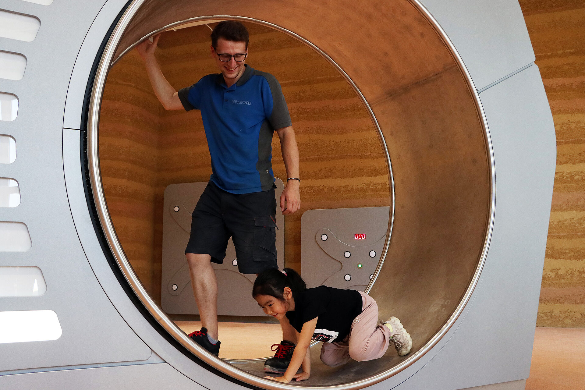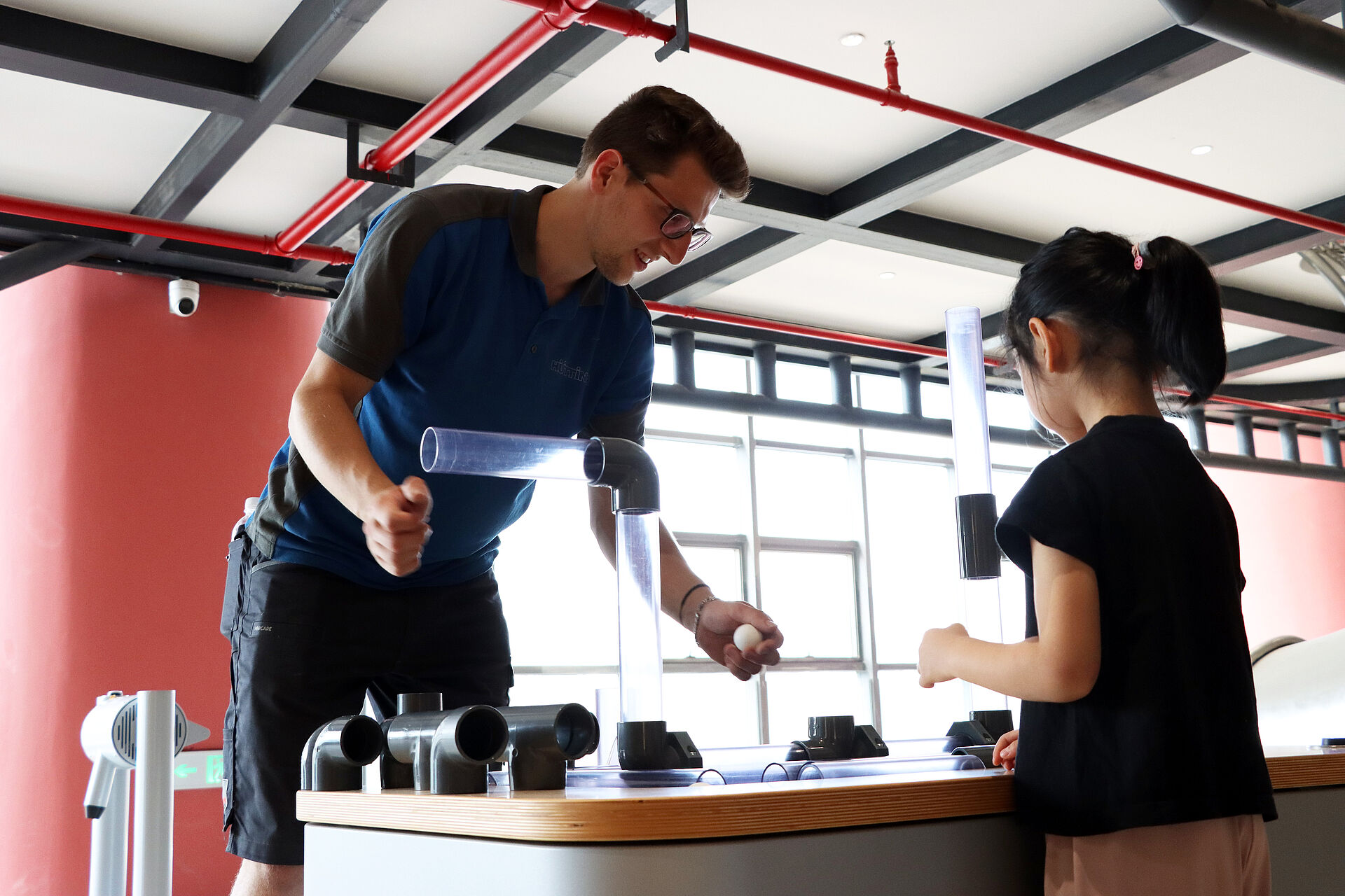 Anfang des Jahres 2021 wurden wir beauftragt, interaktive Exponate und eine Wasserlandschaft für das neue The Explorium!, ein Kindermuseum in Hangzhou China, zu entwerfen und zu fertigen. Mehr als 70 interaktive Exponate wurden in den folgenden Monaten entwickelt, gebaut, evaluiert und im Sommer 2023 installiert. Dieses Projekt wurde in Zusammenarbeit mit Nancy Chalue Jones und ihrem Team realisiert.
