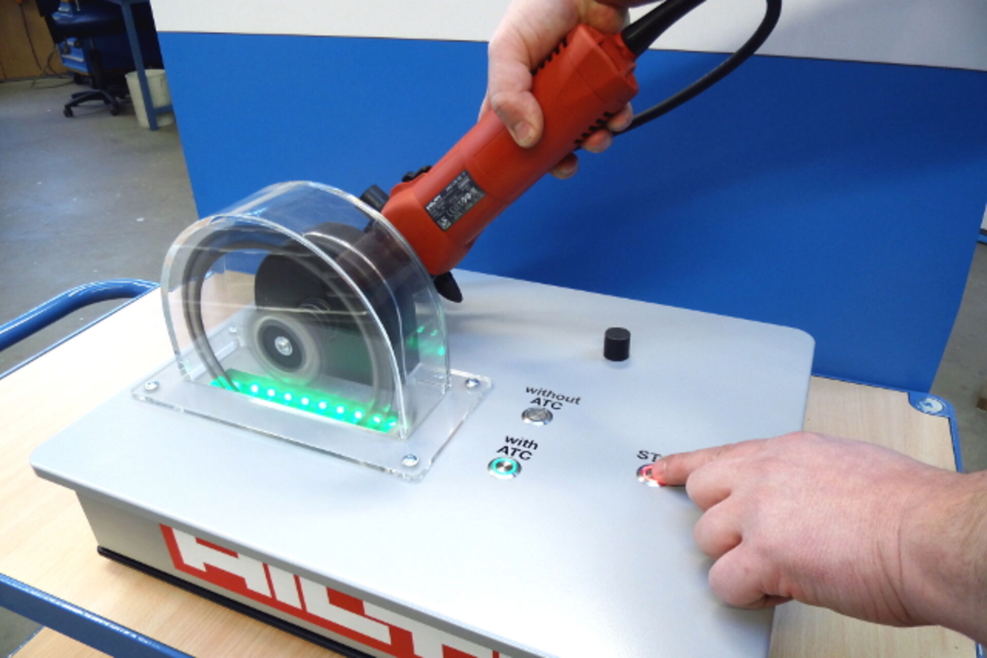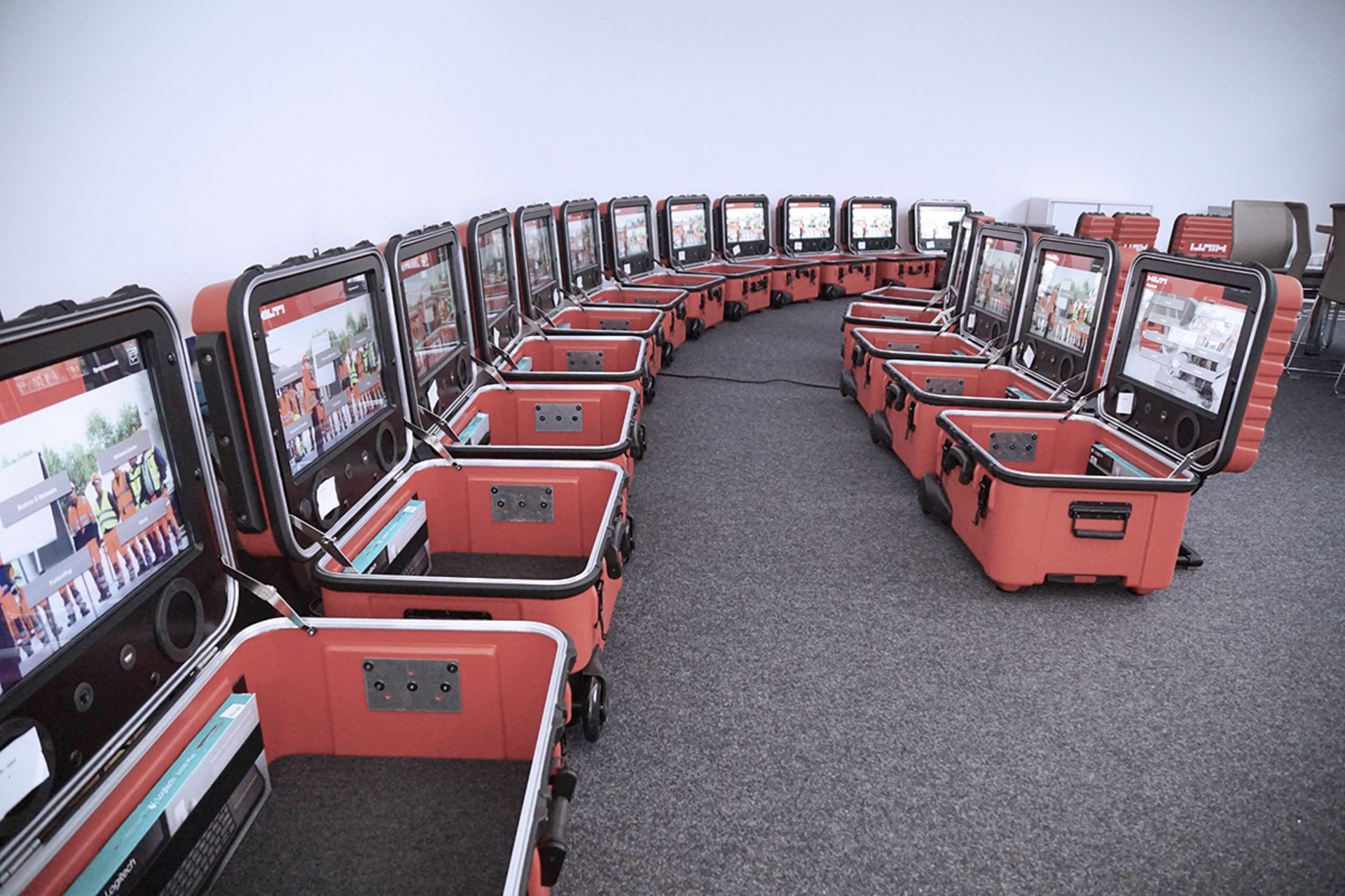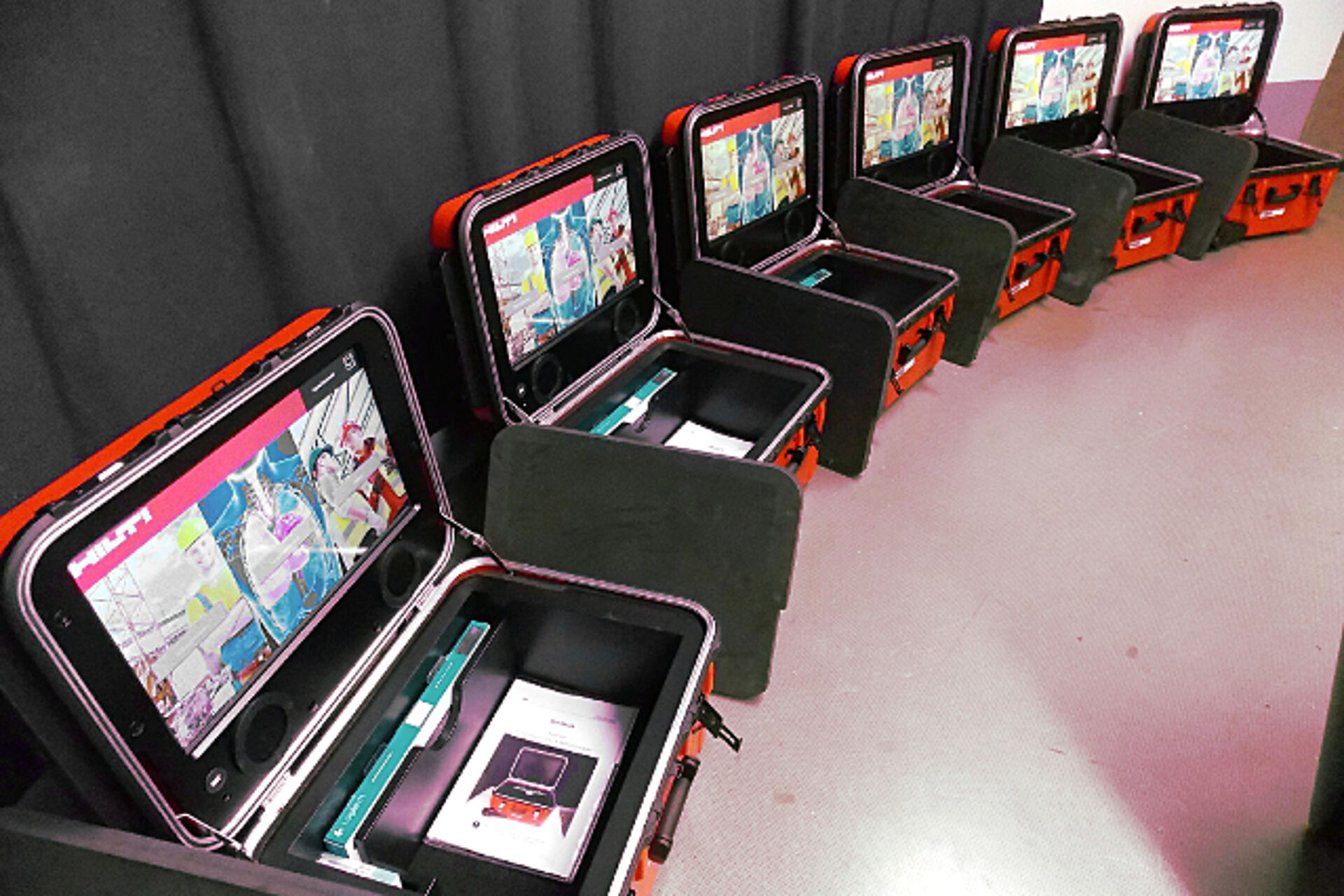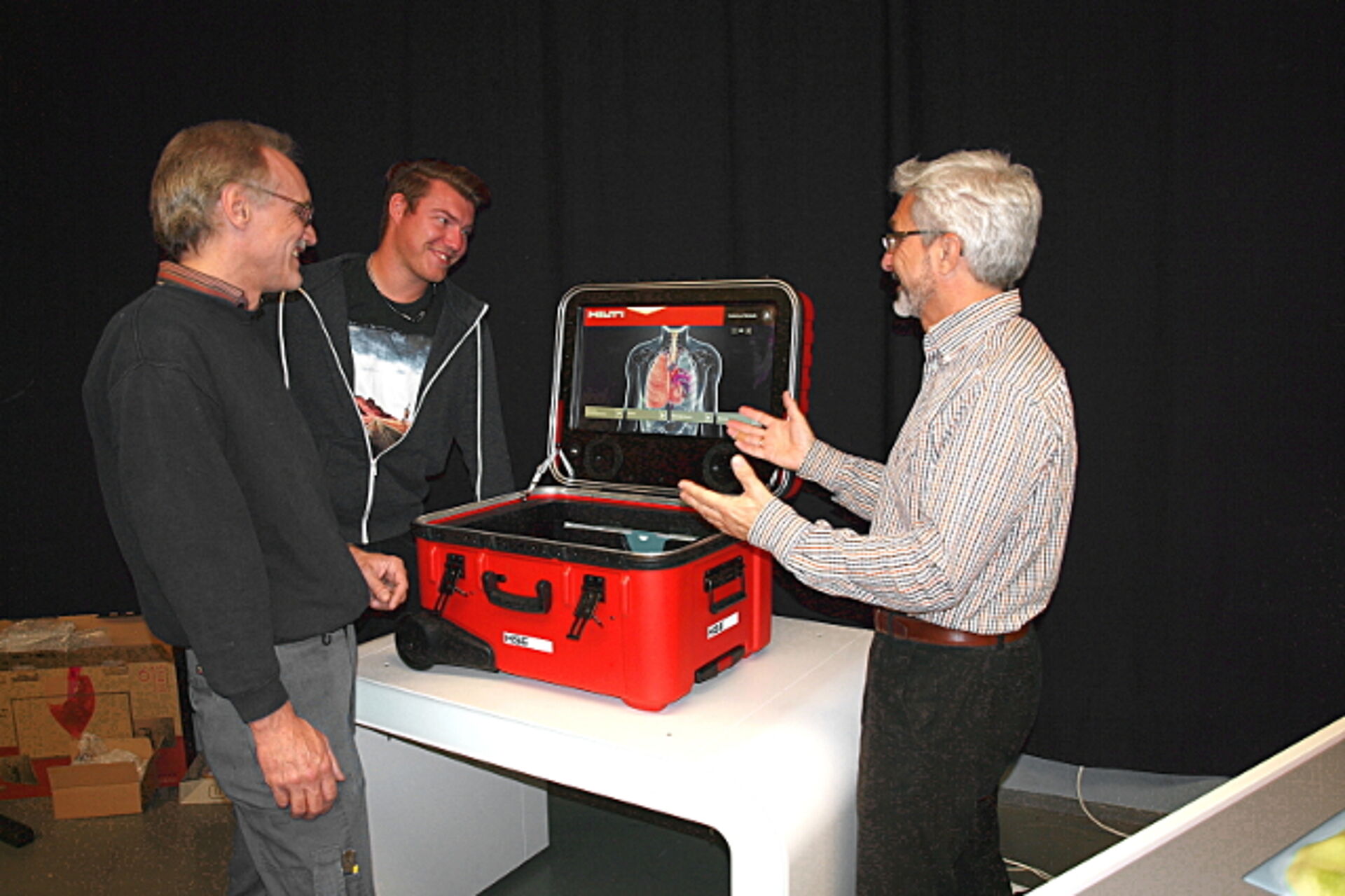 Im April 2014 wurden wir mit der Gestaltung und Entwicklung, dem Prototypenbau sowie der Fertigung von interaktiven Trainingsexponaten für den Einsatz bei Hilti-Sicherheitsschulungen betraut. Entwickelt wurden verschiedene Schulungskoffer und Tischexponate, die fünf Themengebiete der Arbeitssicherheit abdecken und in Kleinserien mit jeweils 10 bis 50 Modulen gefertigt wurden. Seit Anfang 2015 sind die Exponate im Schulungseinsatz.