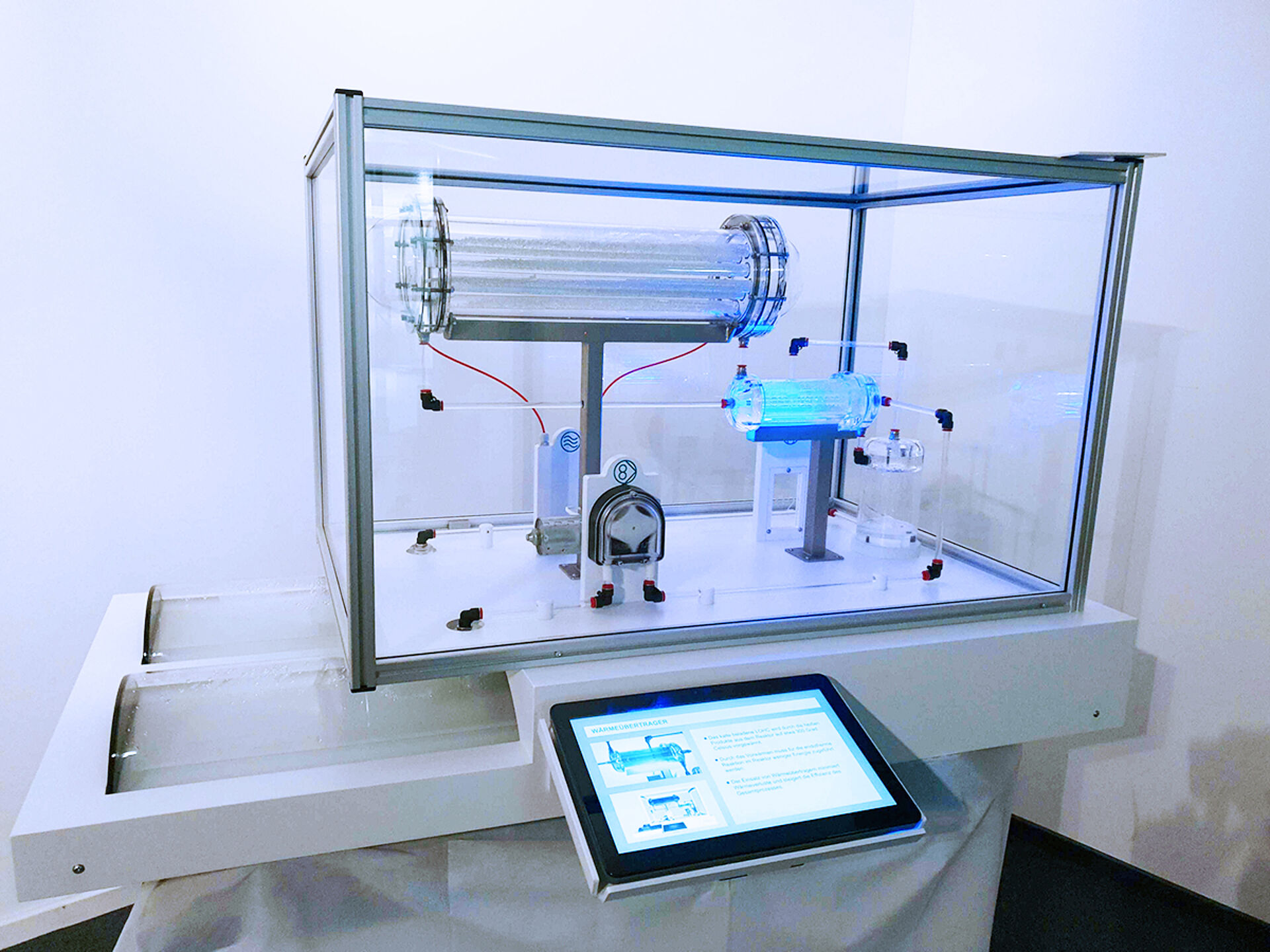 Im April 2020 wurden wir beauftragt ein interaktives Modell zum Dehydrierprozess der Hydrogenious LOHC Technologies GmbH als Cold-Flow-Anlage zu entwickeln und zu fertigen. Das Modell zeigt die Verfahrenstechnik dieses Prozesses einschliesslich Gasentwicklung, Aufheizen der Flüssigkeit, Rekuperieren der Wärme und Trennen von flüssiger und gasförmiger Phase. Der gesamte Ablauf wird mit einer Animation unterfüttert, die die Vorgänge präsentiert und parallel am Exponat verdeutlicht. Ab Herbst 2021 wird das Exponat im Deutschen Museum Nürnberg gezeigt.