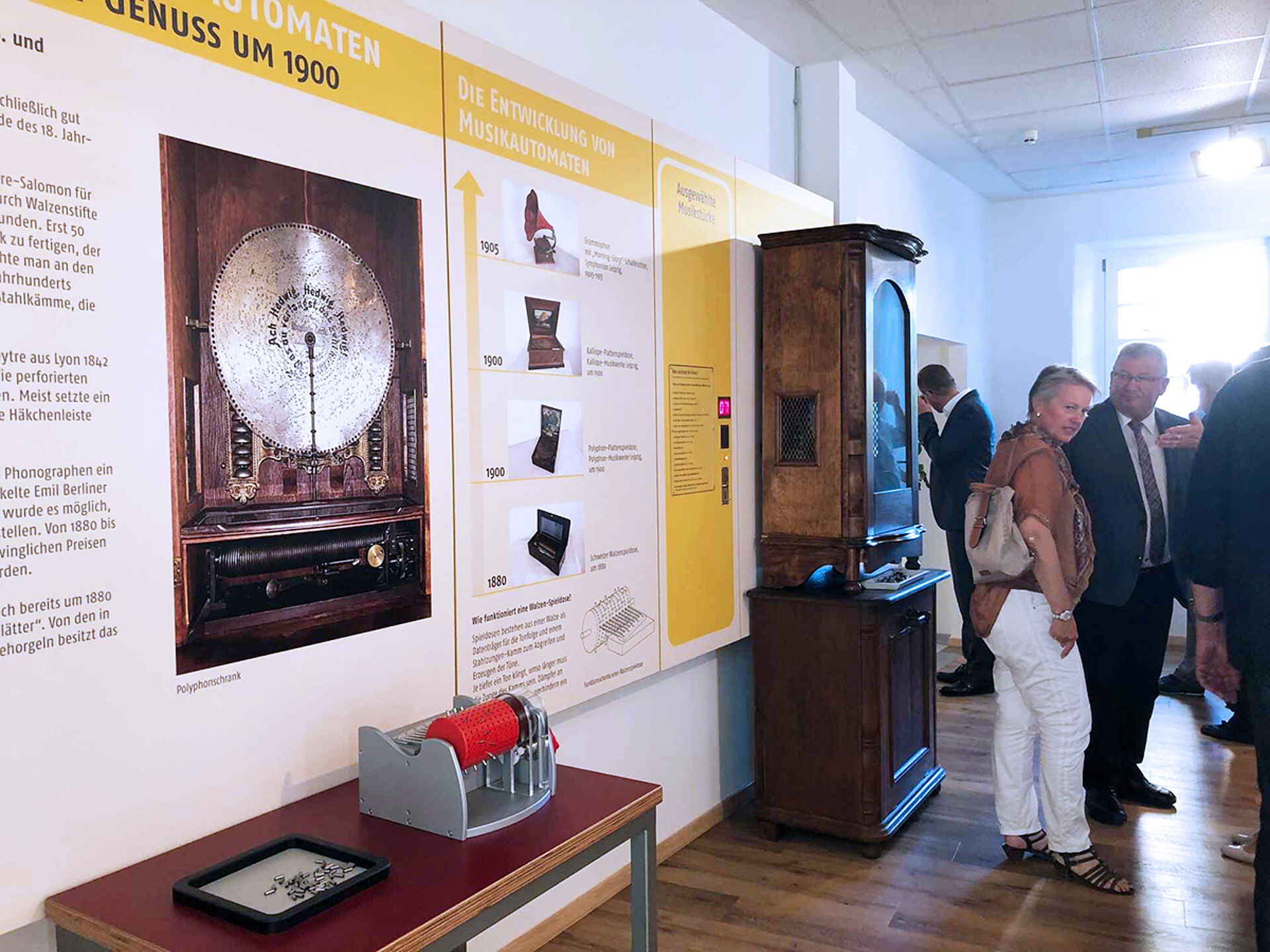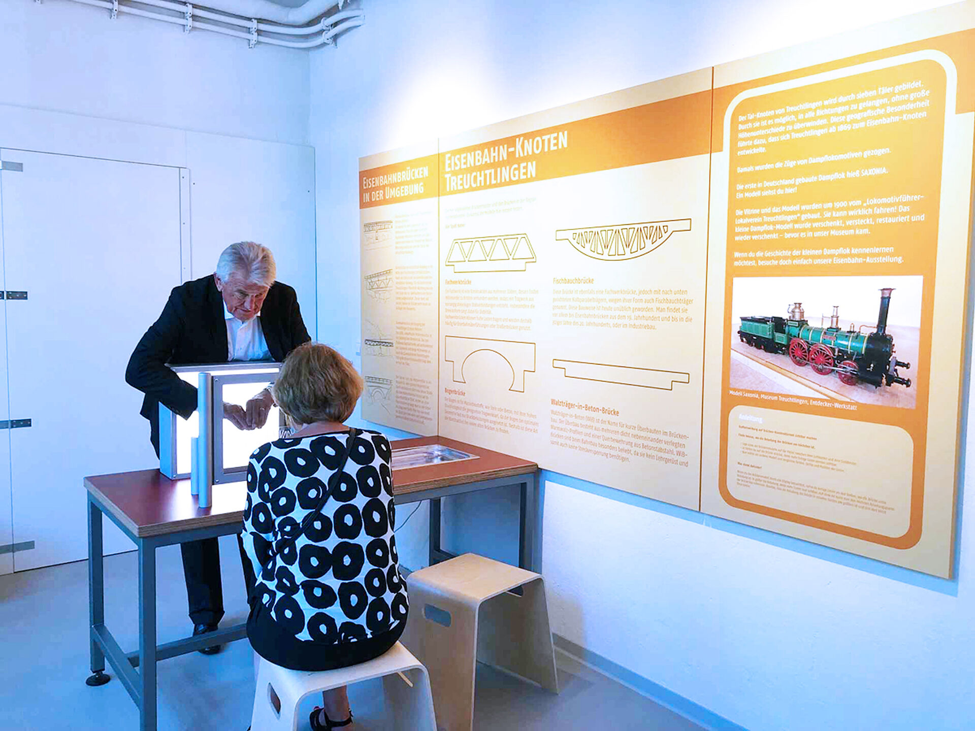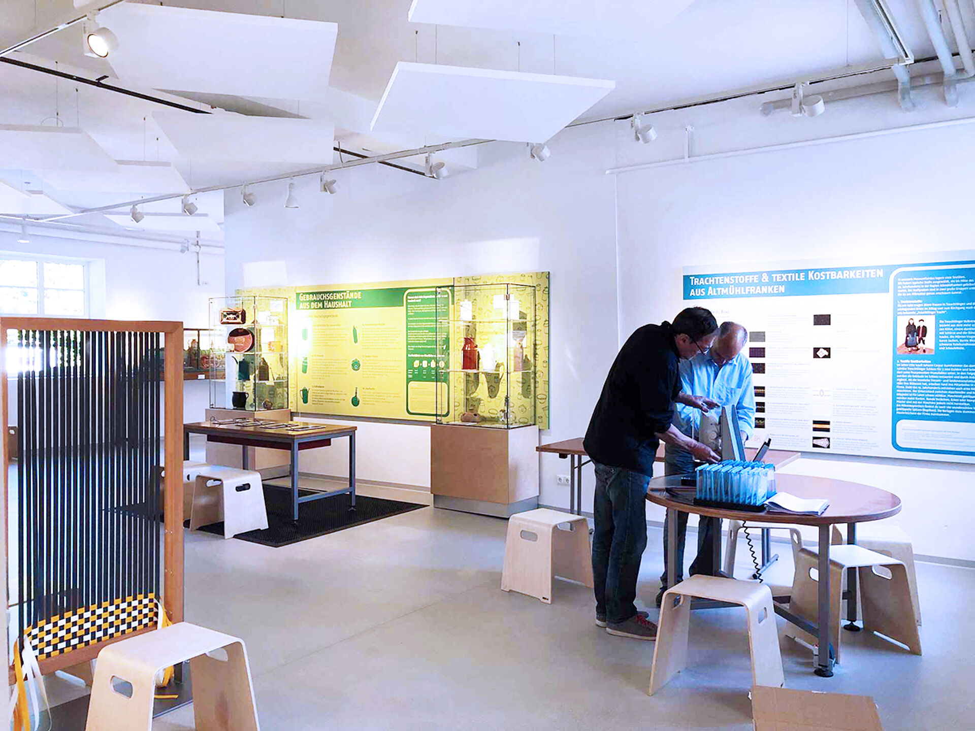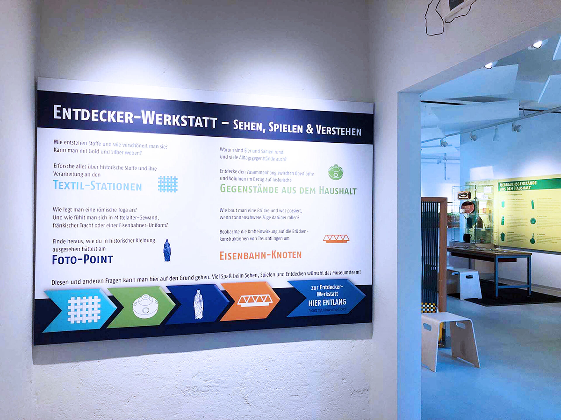 Unter dem Motto „Zeitreisen im Museum Treuchtlingen" laden verschiedene Ausstellungsbereiche zum Sehen, Staunen und Verstehen in Bayerns größter volkskundlicher Sammlung ein. Im Rahmen der Modernisierung des Museums wurden wir mit der Planung, Entwicklung und Fertigung der Entdeckerwerkstatt betraut. In ihr können die Besucher selbst Hand anlegen, Hebel und Knöpfe drücken, Gegenstände aus- oder historische Kleidung anprobieren und so mit allen Sinnen in die regionale Geschichte eintauchen. Sogar ein über 100 Jahre alter Polyphon-Schrank funktioniert und gibt ungewohnte Töne von sich.