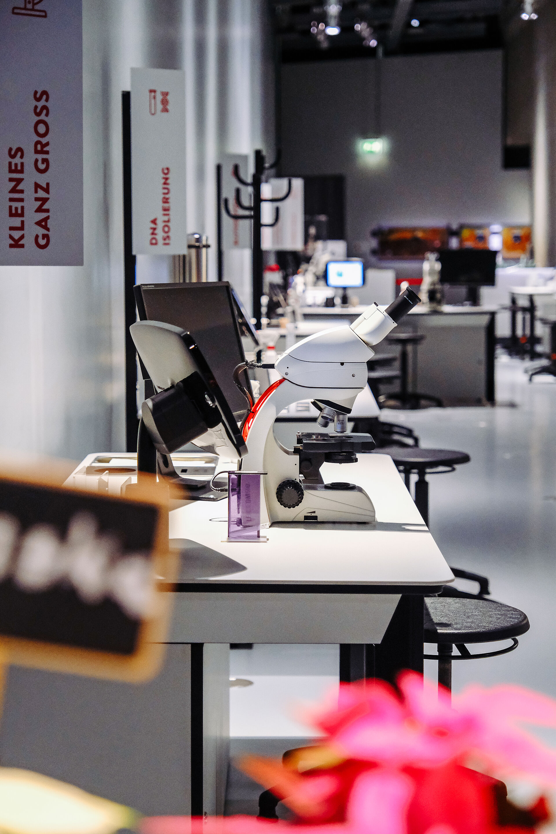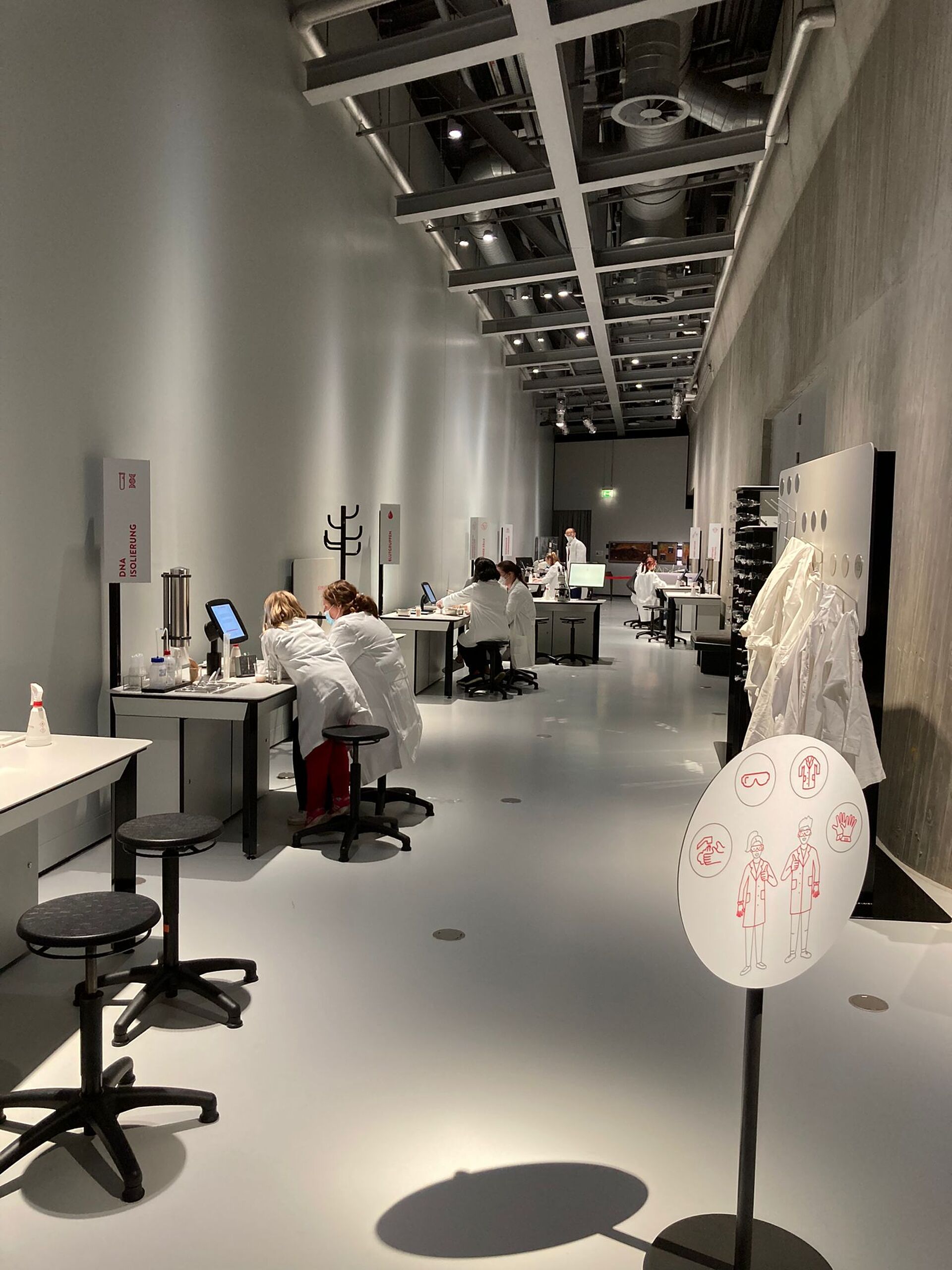 Nach unserer Arbeit für das Cell Lab im Jahr 2005 wurden wir im Oktober 2020 mit seinem Neudesign, Renovierung und Neufertigung beauftragt. Soweit möglich wurden alte Elemente aufbereitet und in den neuen Möbeln wieder verwendet. Das Cell Lab ermöglicht den Umgang mit echtem Laborequipment und gibt einen Einblick in die Arbeit eines modernen Labors - es steht seit Mitte November 2021 wieder der Öffentlichkeit zur Verfügung.