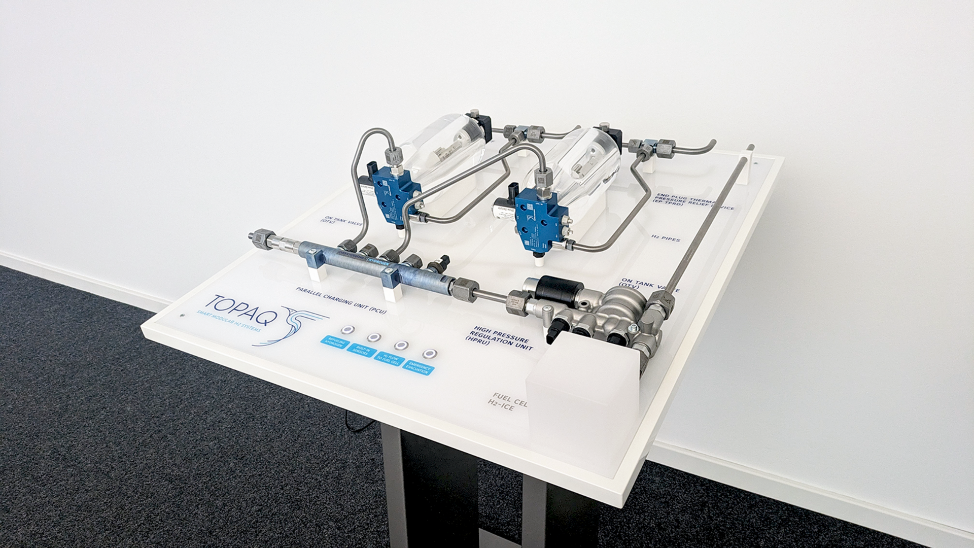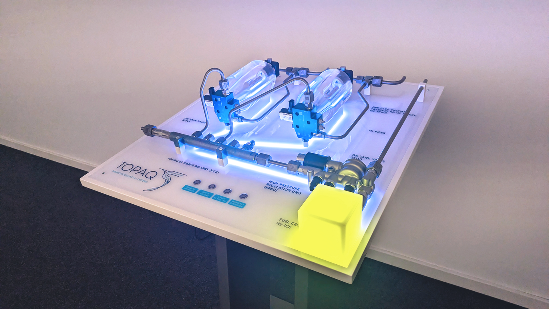 Für Poppe + Potthoff durften wir ein intaktives Messemodell zur Darstellung des innovativen Produktportfollios zum TOPAQ Wasserstoffverteilsystem entwickeln und fertigen. TOPAQ bietet durch seinen modularen Aufbau Vorteile, die über die reine Produktebene hinausgehen. Die Integration von Sensoren in die Komponenten ermöglicht den Aufbau eines intelligenten Wasserstoffversorgungssystems. Das interaktive Modell wurde auf dem Wiener Motorensymposium erstmalig gezeigt.