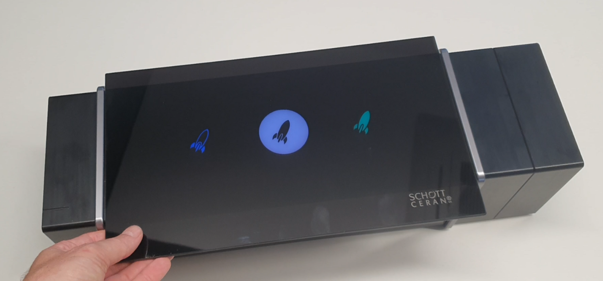 Wir wurden mit der Fertigung von drei identischen, mobilen Demonstratoren für den Einsatz auf dem deutschen, amerikanischen und chinesischen Markt betraut. Präsentiert werden die zahlreichen Möglichkeiten des neuen Glaskeramik-Substrates von SCHOTT. Sichtbar gemacht wird die materialimmanente Intelligenz durch das beidseitig mögliche Auflegen der Glaskeramik auf die Lichtquelle. Die Exponate schaffen einen konkreten Bezug zum Einsatz dieses Materials z.B. auf dem Kochfeld hinsichtlich Anwendung und Dimension.