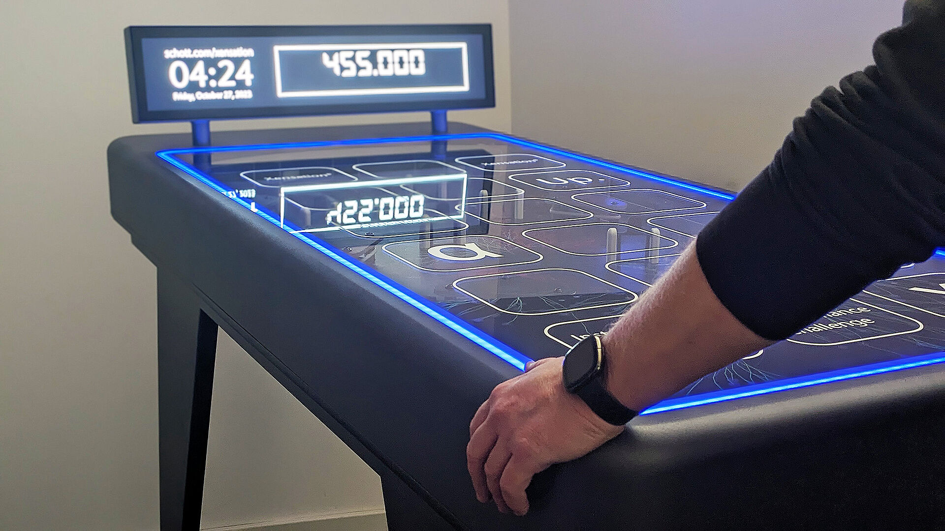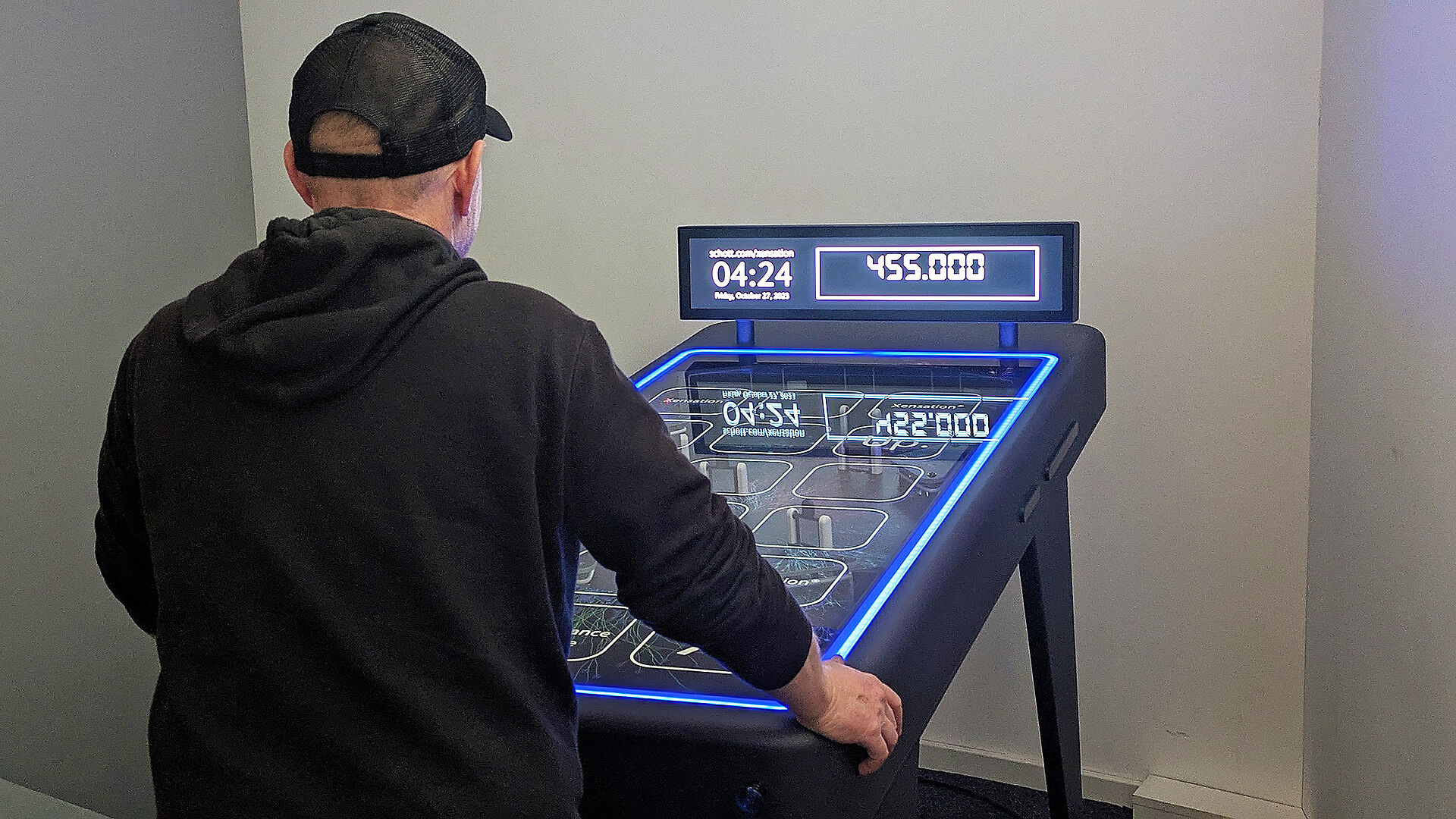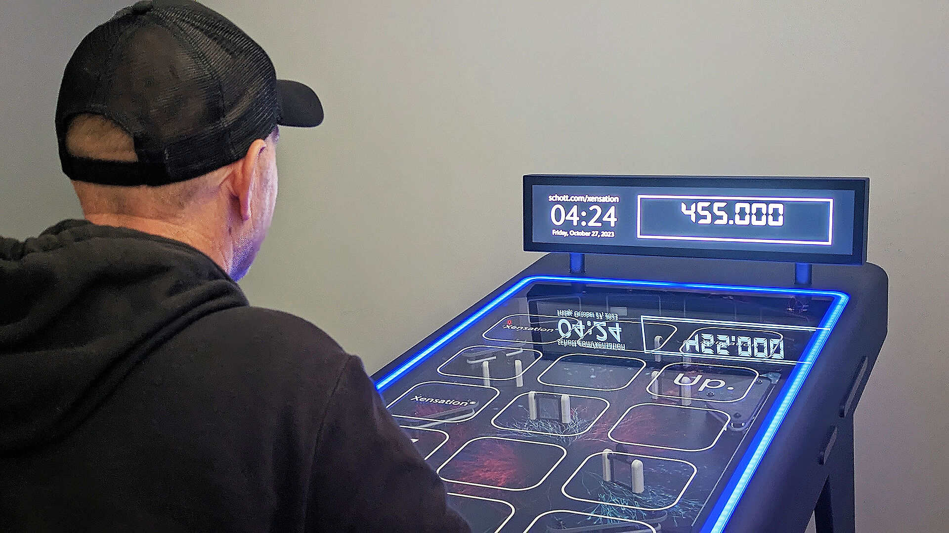 Im August 2023 wurden wir mit dem Entwurf und dem Bau eines Flipperautomaten betraut, der die Unzerbrechlichkeit von Xensation® Hochleistungscoverglas veranschaulicht. Bei diesem Arcade-Spiel wird die Stahlkugel in den Flipper geschossen und trifft verschiedene Ziele aus Xensation® Glas, um so viele Punkte wie möglich zu erzielen, bevor die Kugel verloren geht. Das Exponat wurde im Herbst 2023 bei einer Medienveranstaltung in Indien erstmalig gezeigt.