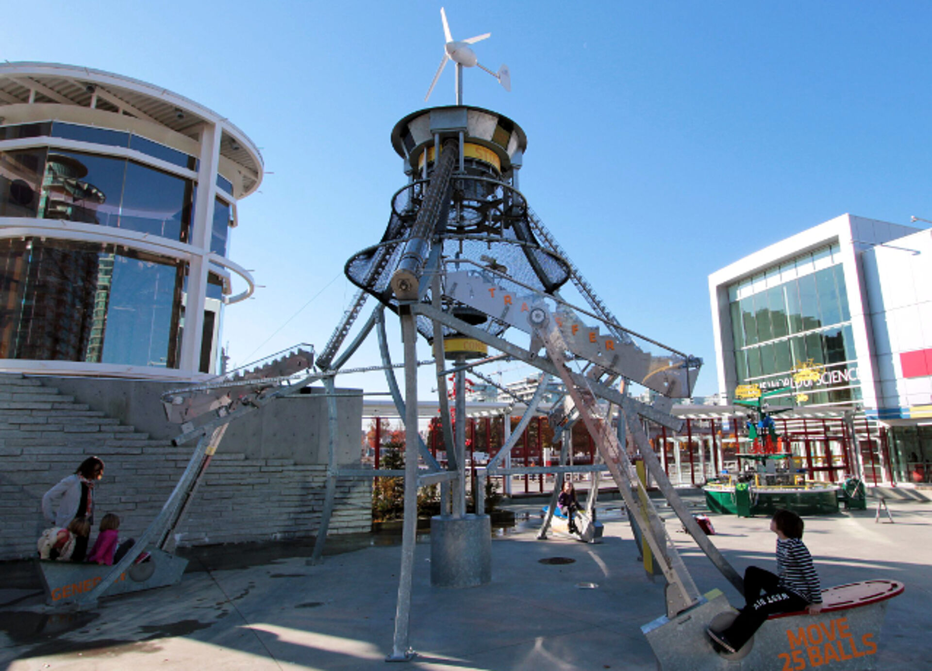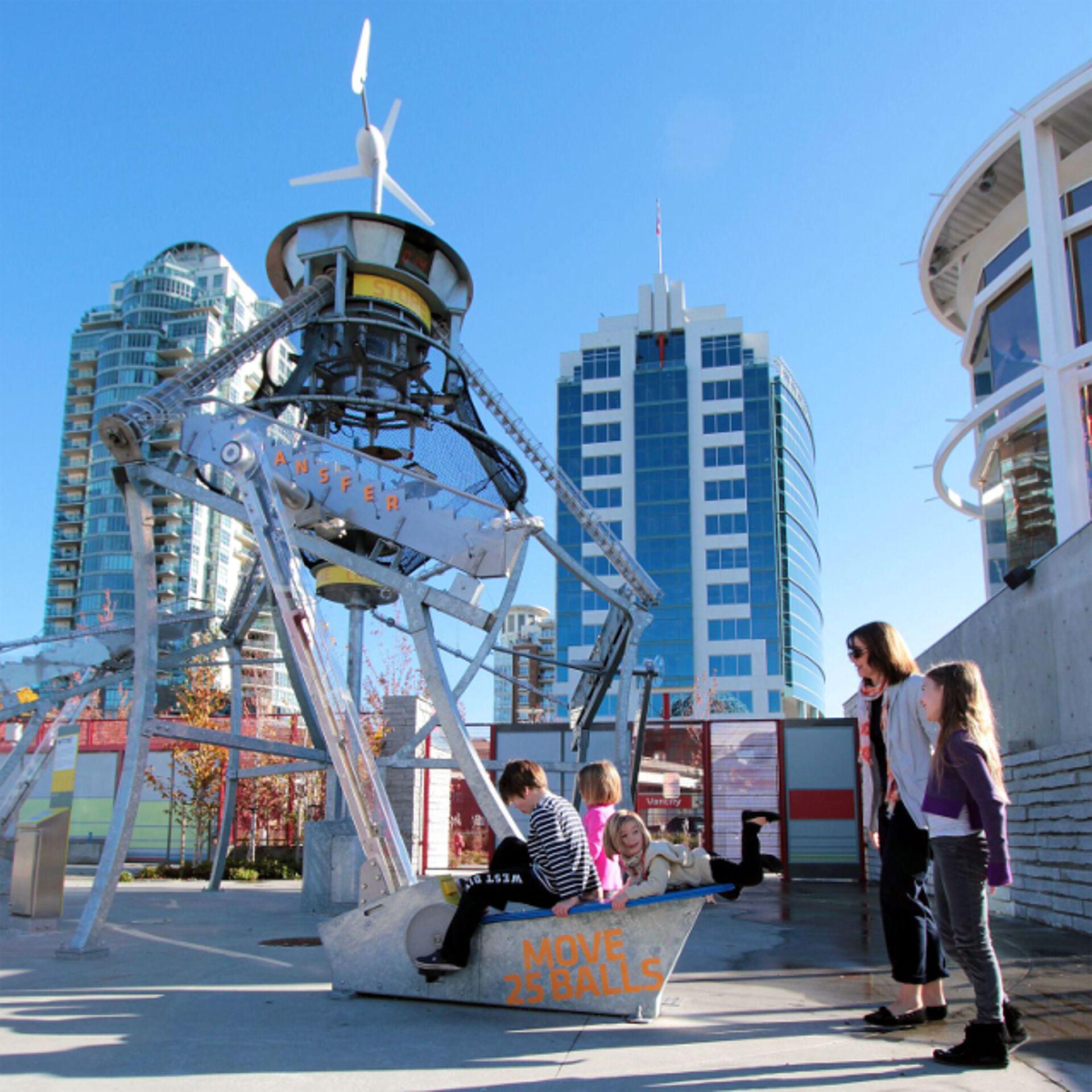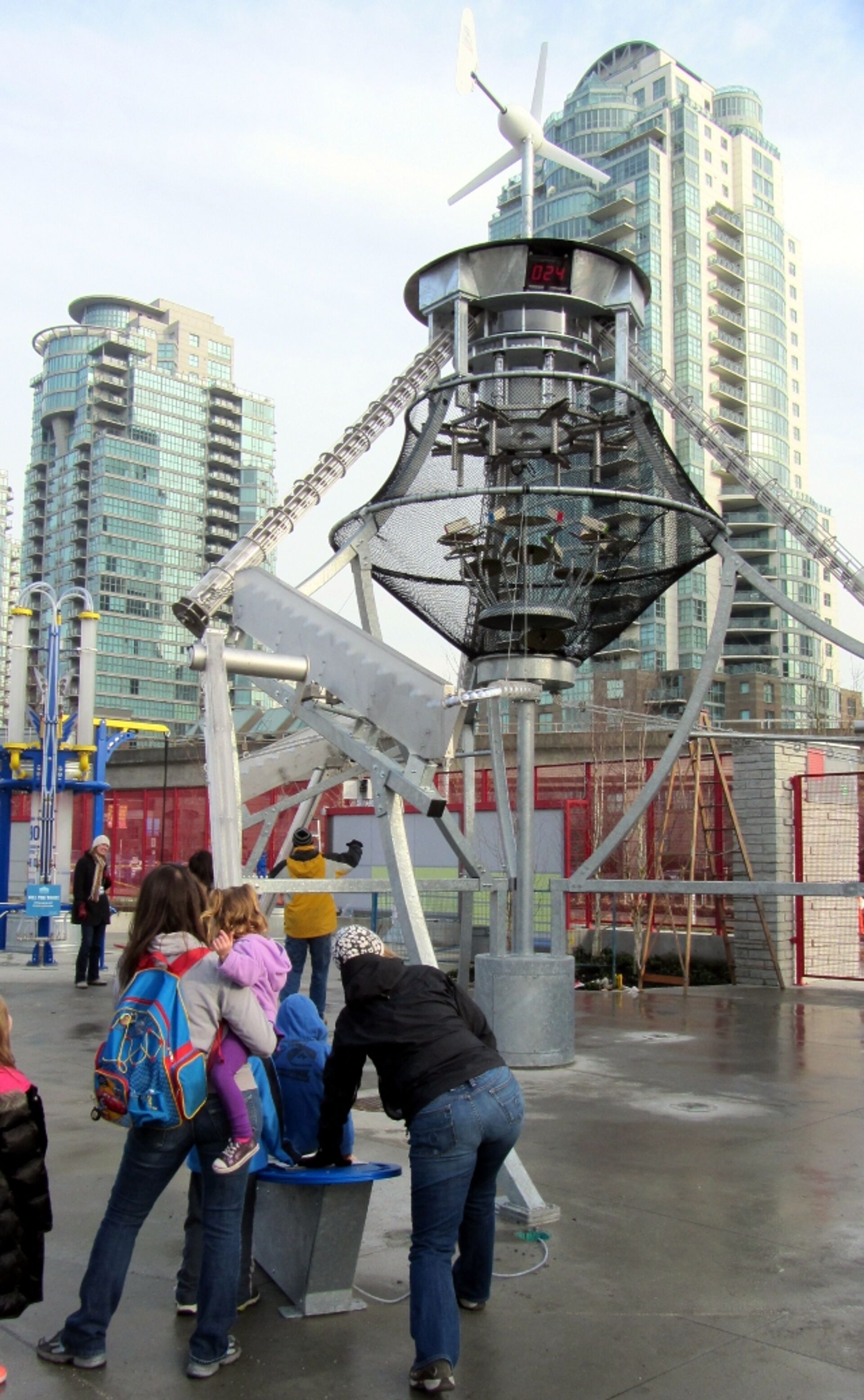 Im August 2011 wurden wir mit der Konzeption, dem Design und dem Bau einer riesigen kinetischen Skulptur zum Thema Energie für den Ken Spencer Science Park der Science World betraut. Unter Einbeziehung der Öffentlichkeit enstand innerhalb des Parks die neue Freiluft-Wissenschaftsgallerie SWITCH: The Outdoor Science Experience. Dieser neue Outdoor-Bereich enthält mehr als zwanzig erstaunliche interaktive Exponate und Stationen, die Besucher allen Alters in die Welt der Wissenschaft, Energie und Nachhaltigkeit führen.