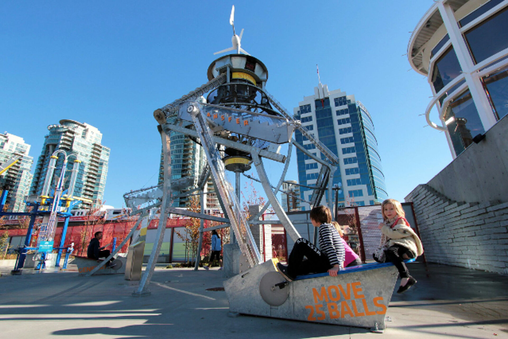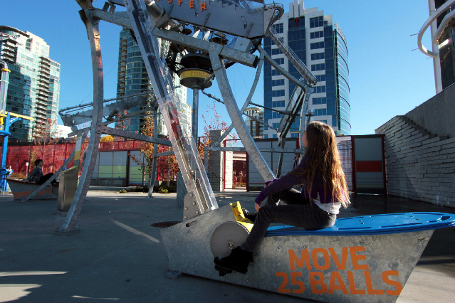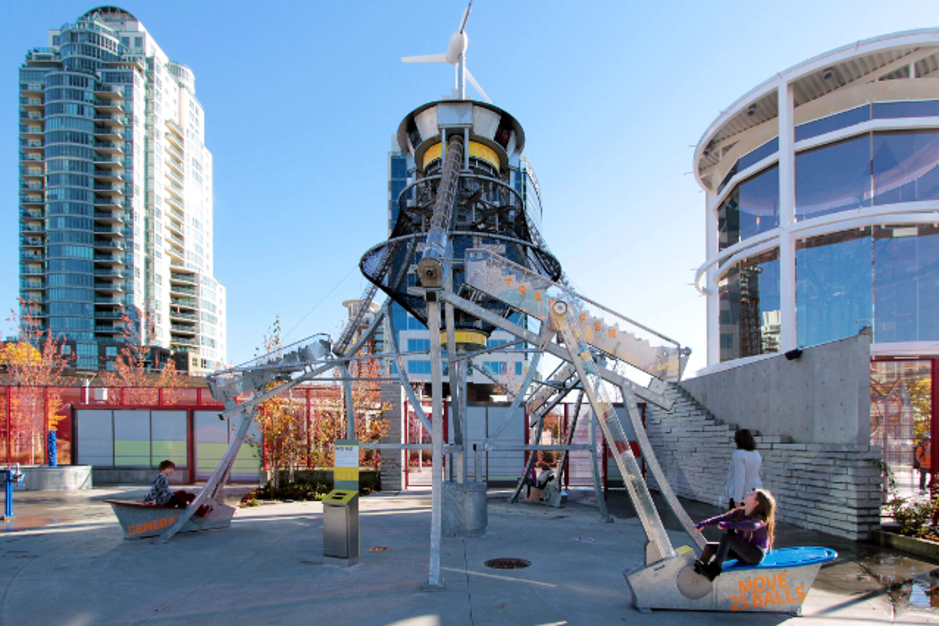 Im August 2011 wurden wir mit der Konzeption, dem Design und dem Bau einer riesigen kinetischen Skulptur zum Thema Energie für den Ken Spencer Science Park der Science World betraut. Unter Einbeziehung der Öffentlichkeit enstand innerhalb des Parks die neue Freiluft-Wissenschaftsgallerie SWITCH: The Outdoor Science Experience. Dieser neue Outdoor-Bereich enthält mehr als zwanzig erstaunliche interaktive Exponate und Stationen, die Besucher allen Alters in die Welt der Wissenschaft, Energie und Nachhaltigkeit führen.