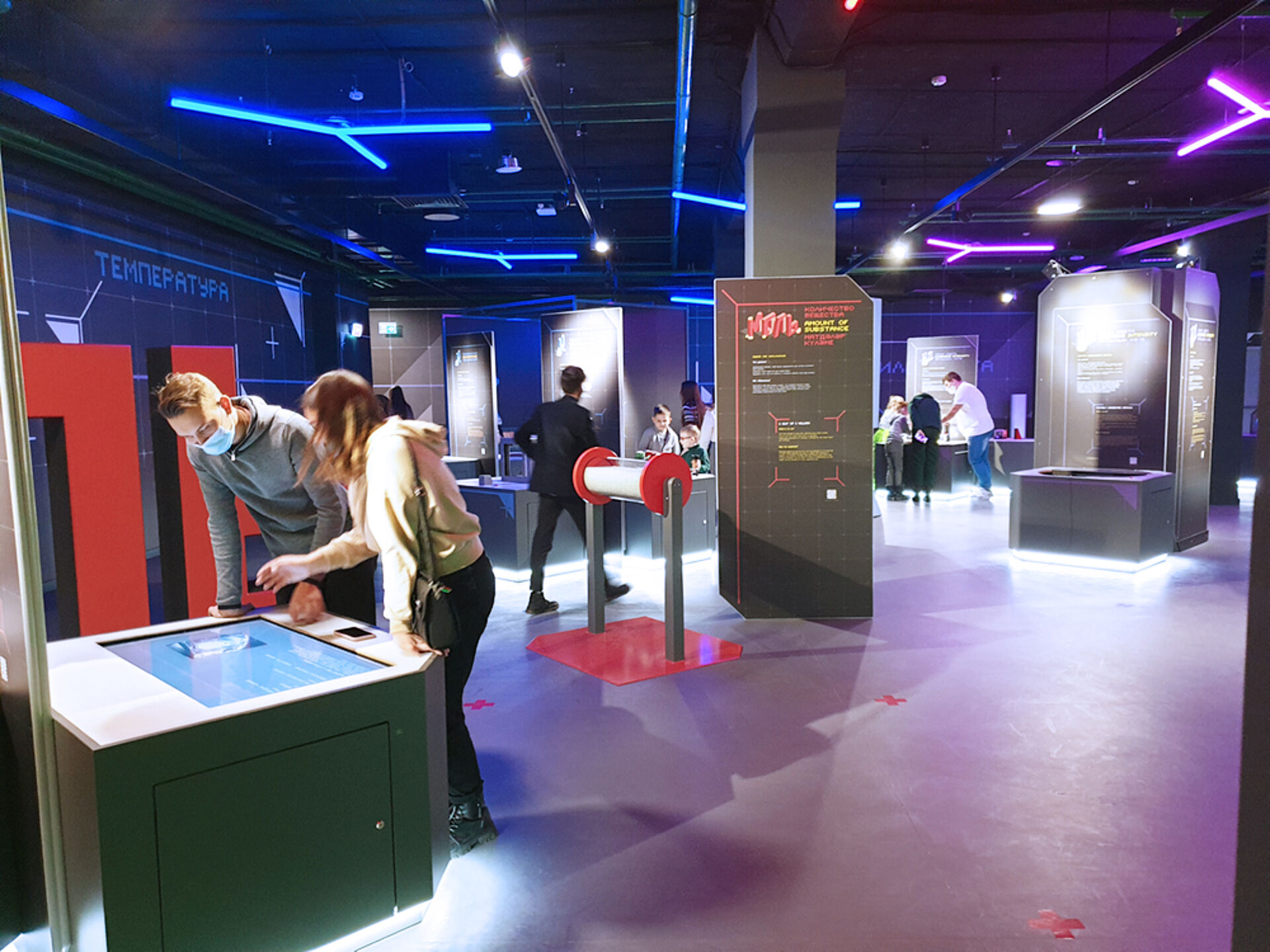Im August 2019 erhielten wir den Auftrag das Альметрика Интерактивный центр - Almetrika Interactive Centre konzeptionell zu designen, technisch zu entwickeln und zu fertigen. TATNEFT hat das interaktive Zentrum in Almetjewsk errichtet mit dem Ziel, bei Kindern und Jugendlichen ein nachhaltiges Interesse für naturwissenschaftliche und technische Berufe sowie an Technologie durch Experimentieren und Ausprobieren zu wecken. Almetrika bietet innovative Ansätze für das Studium der Naturwissenschaften - 55 einzigartige, interaktive Exponate helfen, komplexe physikalische Konzepte wie Zeit, Masse, Länge, Licht, Elektrizität, Temperatur und Materie zu veranschaulichen. Almetrika, Tatarstans erstes und bis dato einziges Bildungs- und Wissenschaftszentrum dieser Art, wurde im Dezember 2020 offiziell eröffnet.
