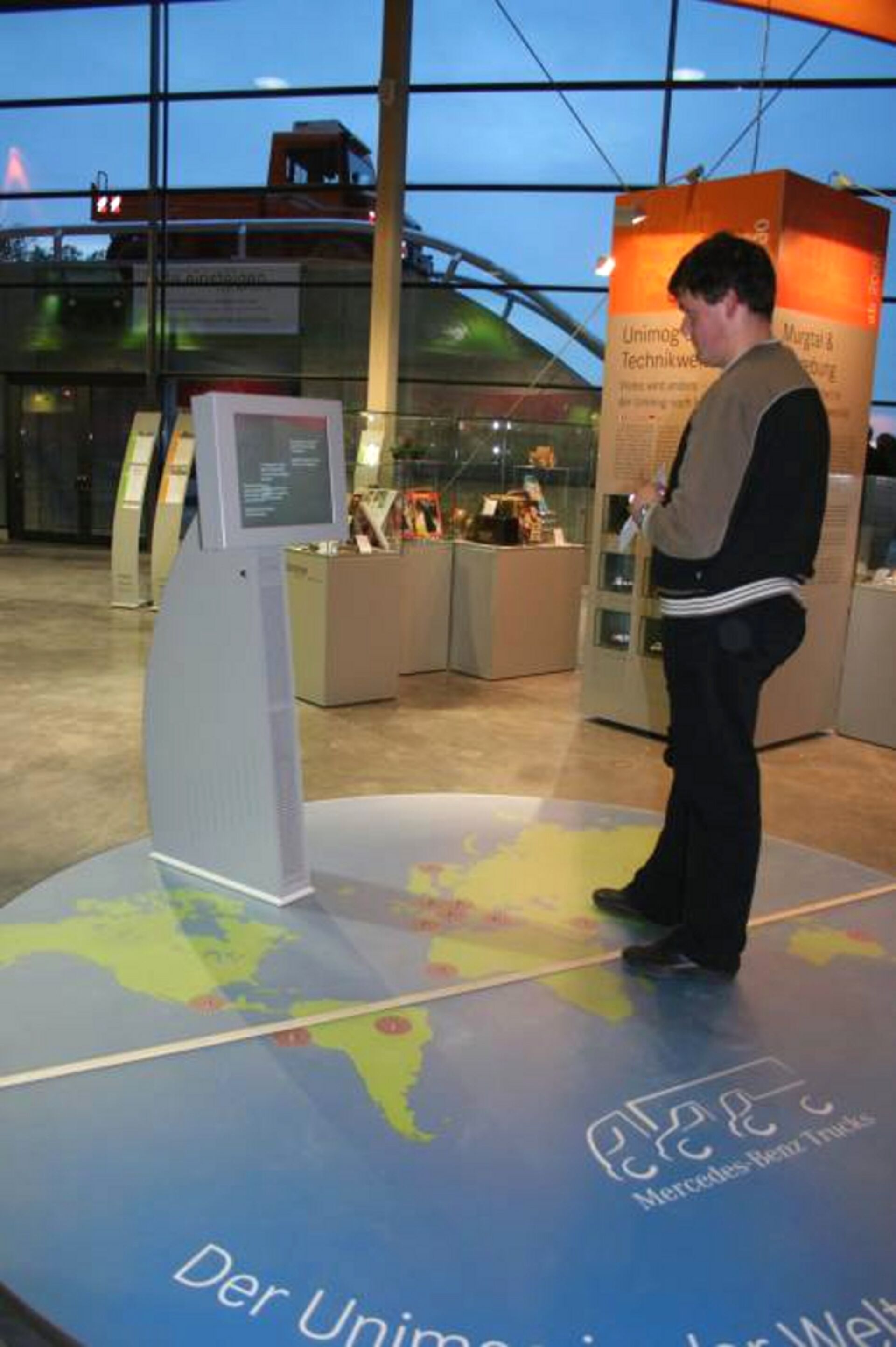 Das Unimog Museum in Gaggenau stellt Unimog aus verschiedenen Jahrzehnten in den Mittelpunkt. Ihre Technik, ihre Besonderheiten, ihre Möglichkeiten, ihre Einsatzgebiete, ihre Internationalität, ihre Heldentaten und ihre (Vor)Besitzer. Mit vielen Liebes- und Erfolgsgeschichten. Mit ungeahnten Einblicken, neuen Zusammenhängen und natürlich einer Schrauber-Werkstatt. Hüttinger lieferte für diese charaktervolle Präsentation interaktive Exponate für Kinder und Erwachsene.