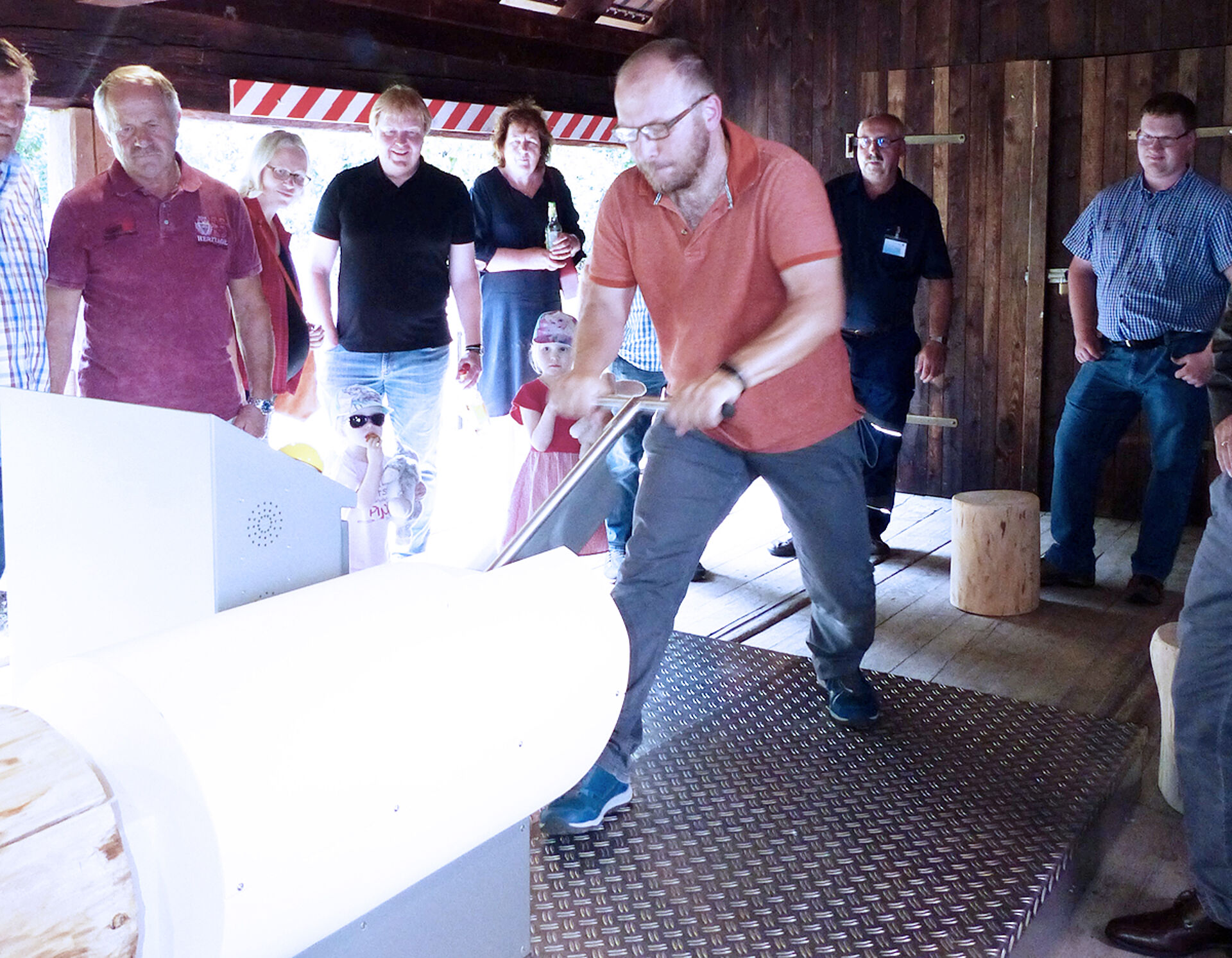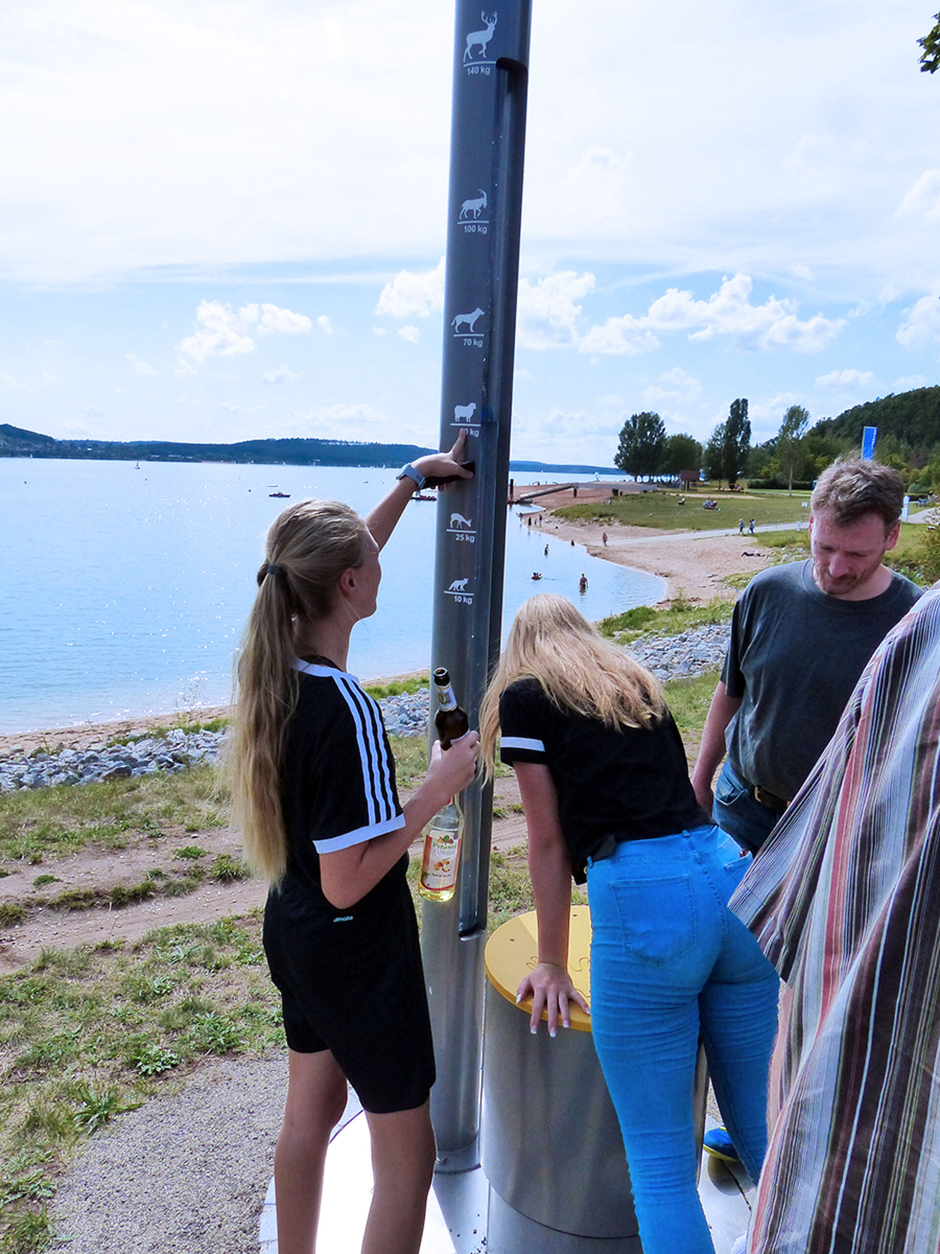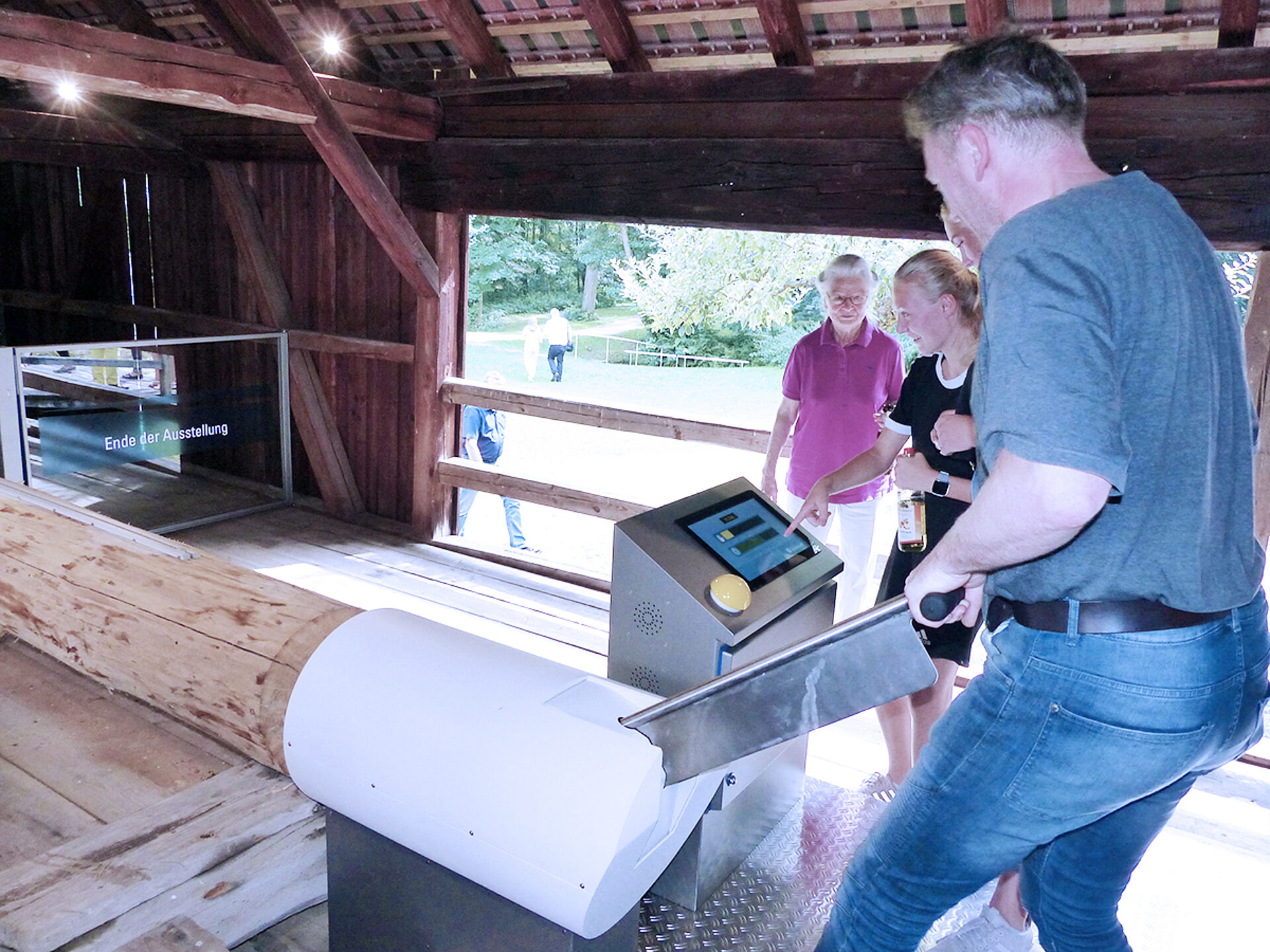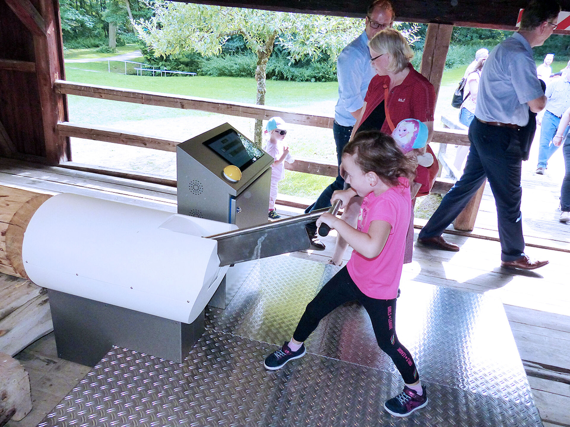 Auf anschauliche und abwechslungsreiche Weise zeigt der im August 2019 eröffnete Erlebnispfad des Wasserwirtschaftsamtes, im Bereich der historischen Mandlesmühle und am Damm des Großen Brombachsees, die Entwicklung der Wasserkraftnutzung vom Wasserrad bis hin zu den neuesten innovativen fischschonenden Techniken. Durch den Einsatz von unterschiedlichsten Medien wird die Wasserkraftnutzung im Wandel der Zeit interaktiv erlebbar. Im ehemaligen Sägewerk lädt ein Spiel zum Wettkampf ein: Handsägen gegen die Wasserkraft - wer ist schneller? Auf dem Damm des Großen Brombachsees in Allmannsdorf kann man am eigenen Körper erfahren, wie stark die Kraft des Wassers ist. Wie weit kann man eine Wassersäule nach oben drücken? Hüttinger hat für den Weg der Wasserkraft die interaktiven Exponate Sägespiel und Wasserdruck entwickelt und gebaut.