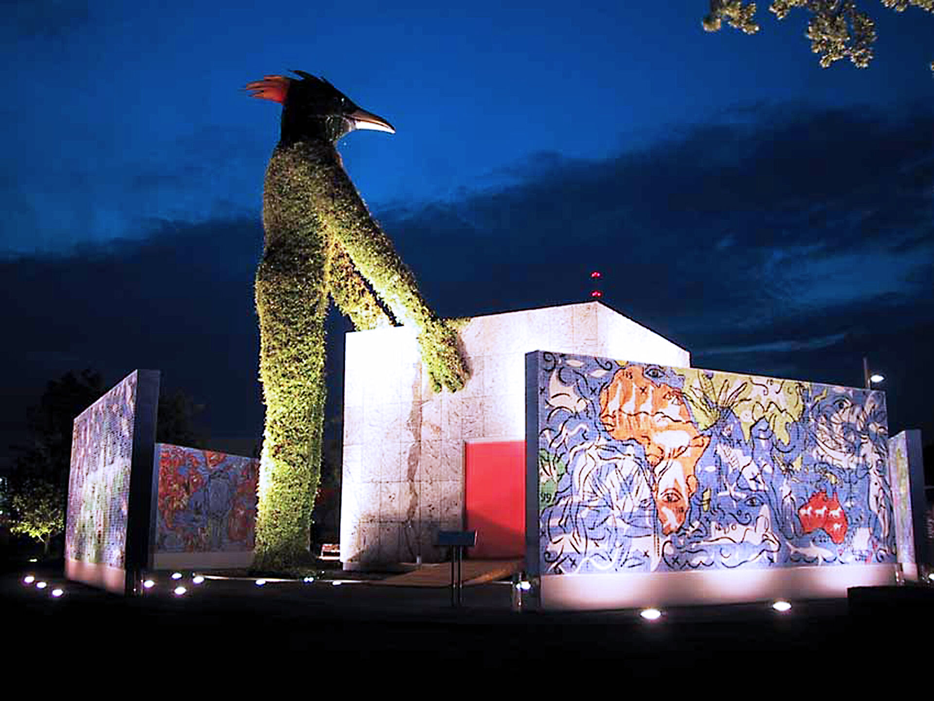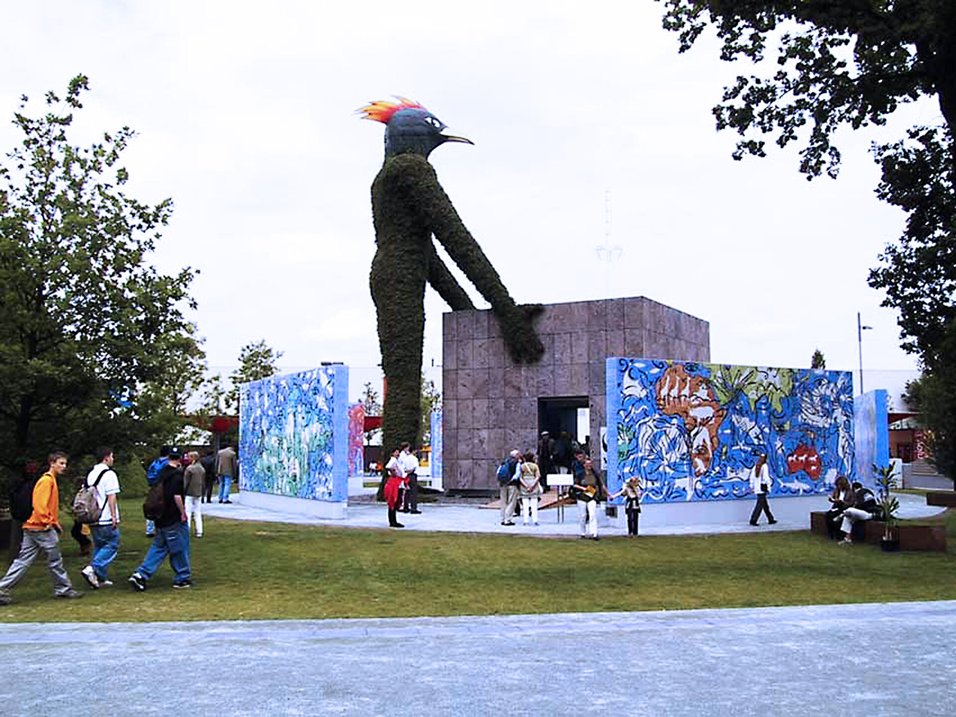 Nach der EXPO wurde das gesamte Enseble aus Pavillon, Erdgeist und umgebender Keramikskulptur in den Park der Alten Abtei in Mettlach verbracht und kann dort besichtigt werden.